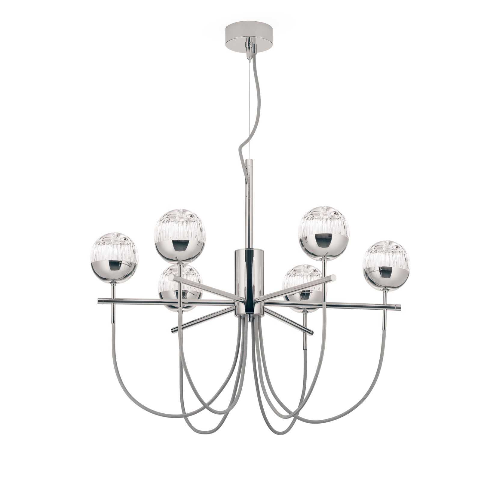 BALL chandelier, 6 lamps, nickel plated with clear crystal glasses with handmade line cut