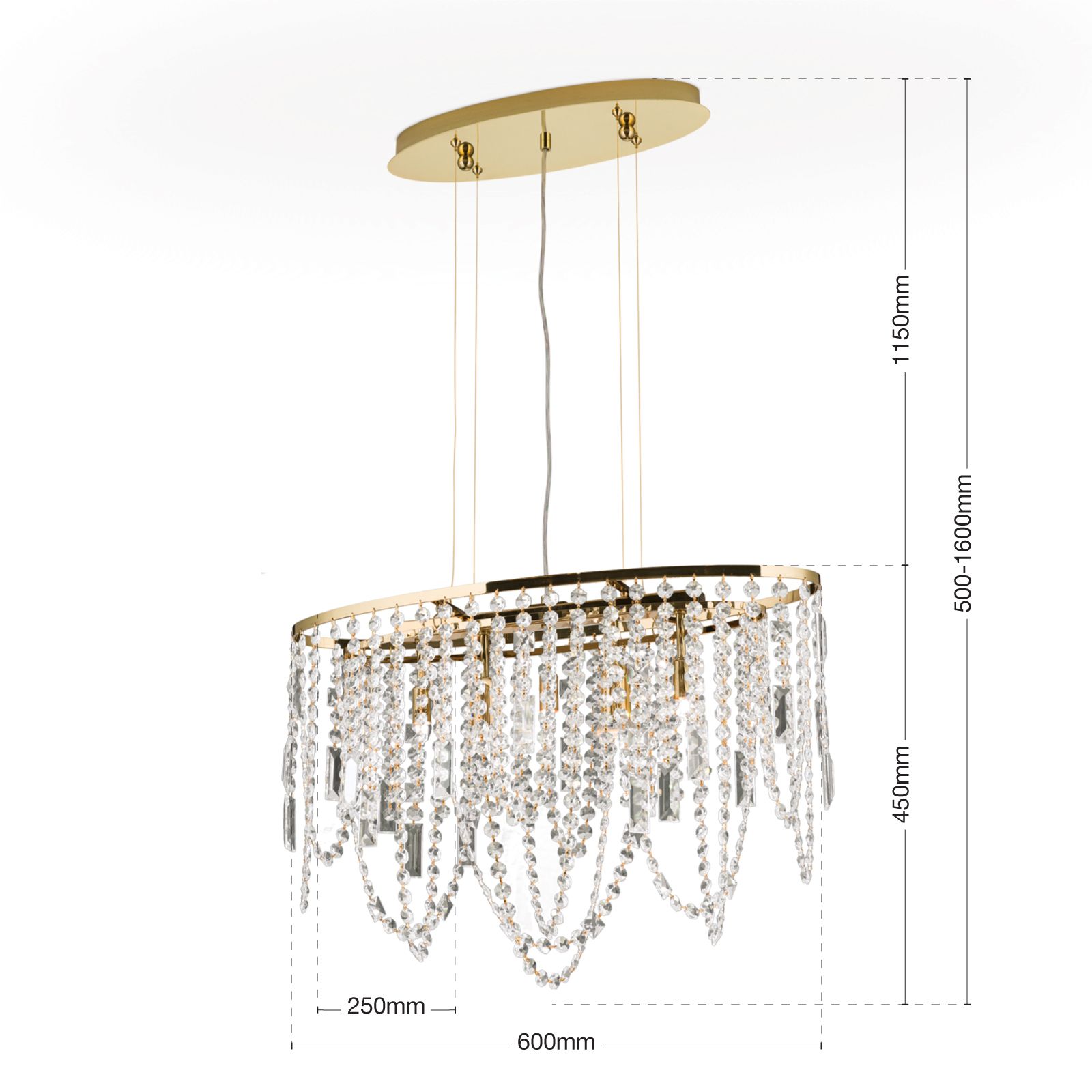 Ceiling chandelier KRISTALLDESIGN in oval shape, 60x25cm, 24K gold plated