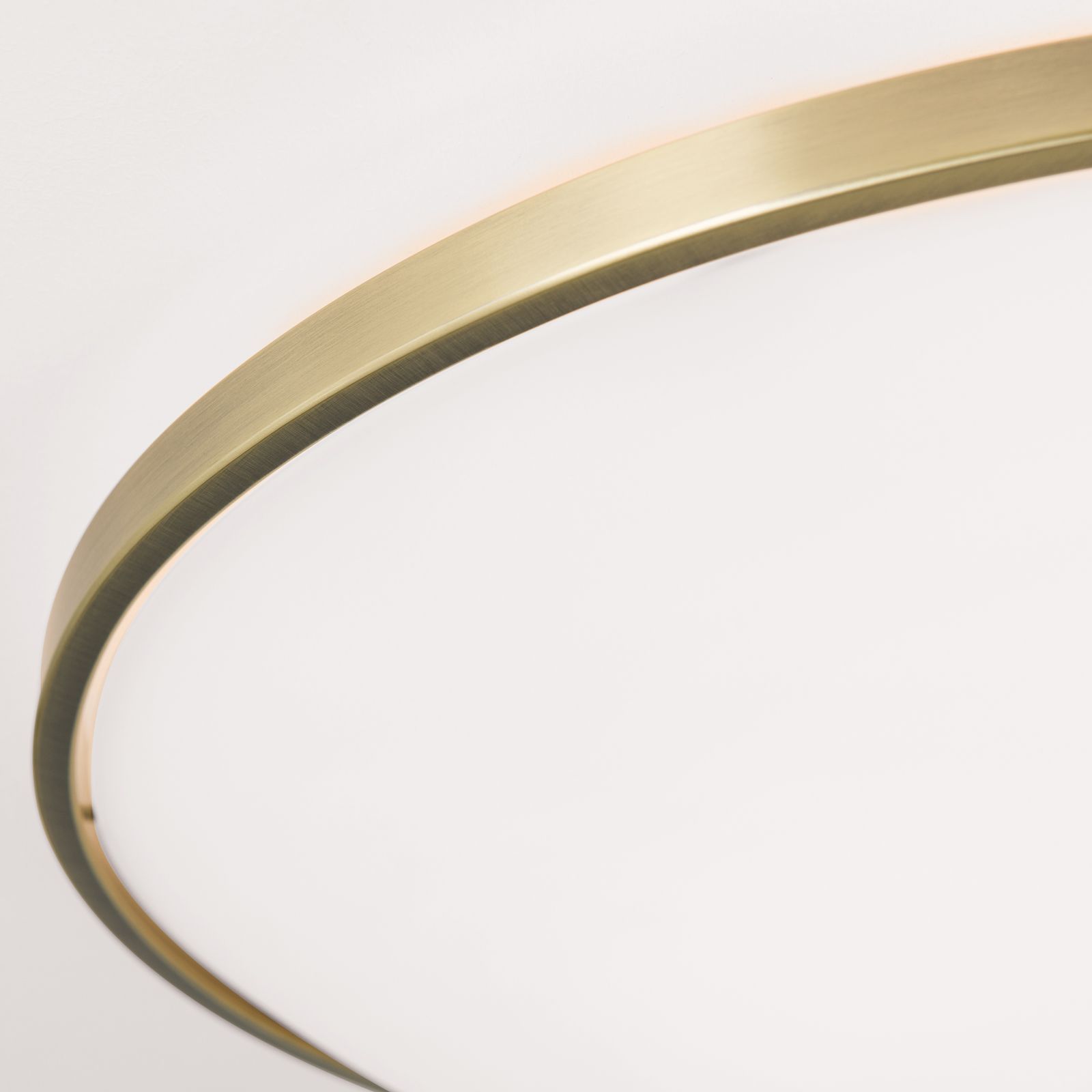 Its elegant appearance with matt opal glass and patinated metal elements makes it versatile regarding the combination with diverging interior design styles.