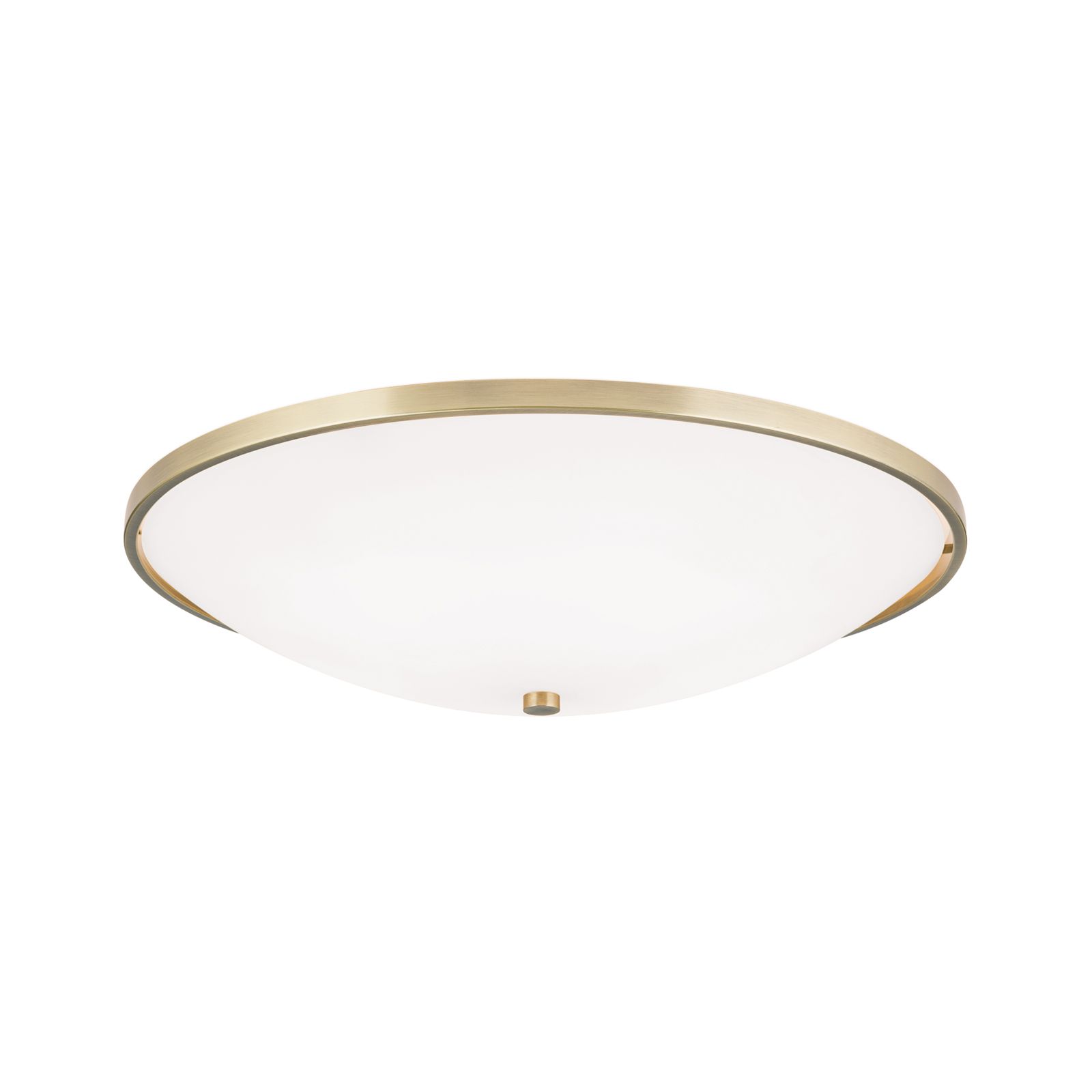 The dimmable ceiling light AIDA with its considerable 56 centimetre diameter and full five E27 sockets of 60 watts guarantees high light output diffused by its opal glass shade..