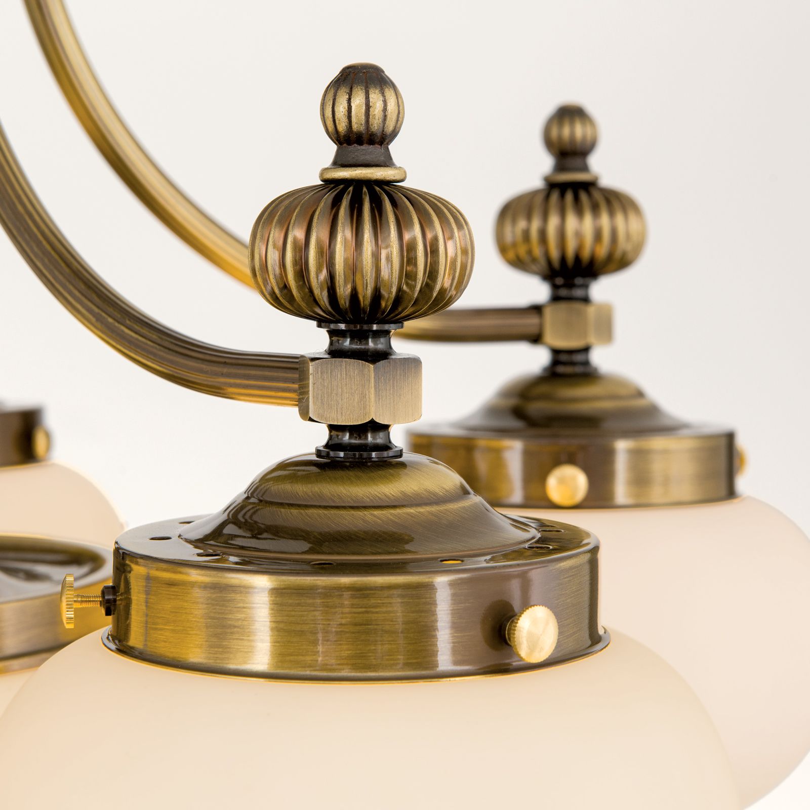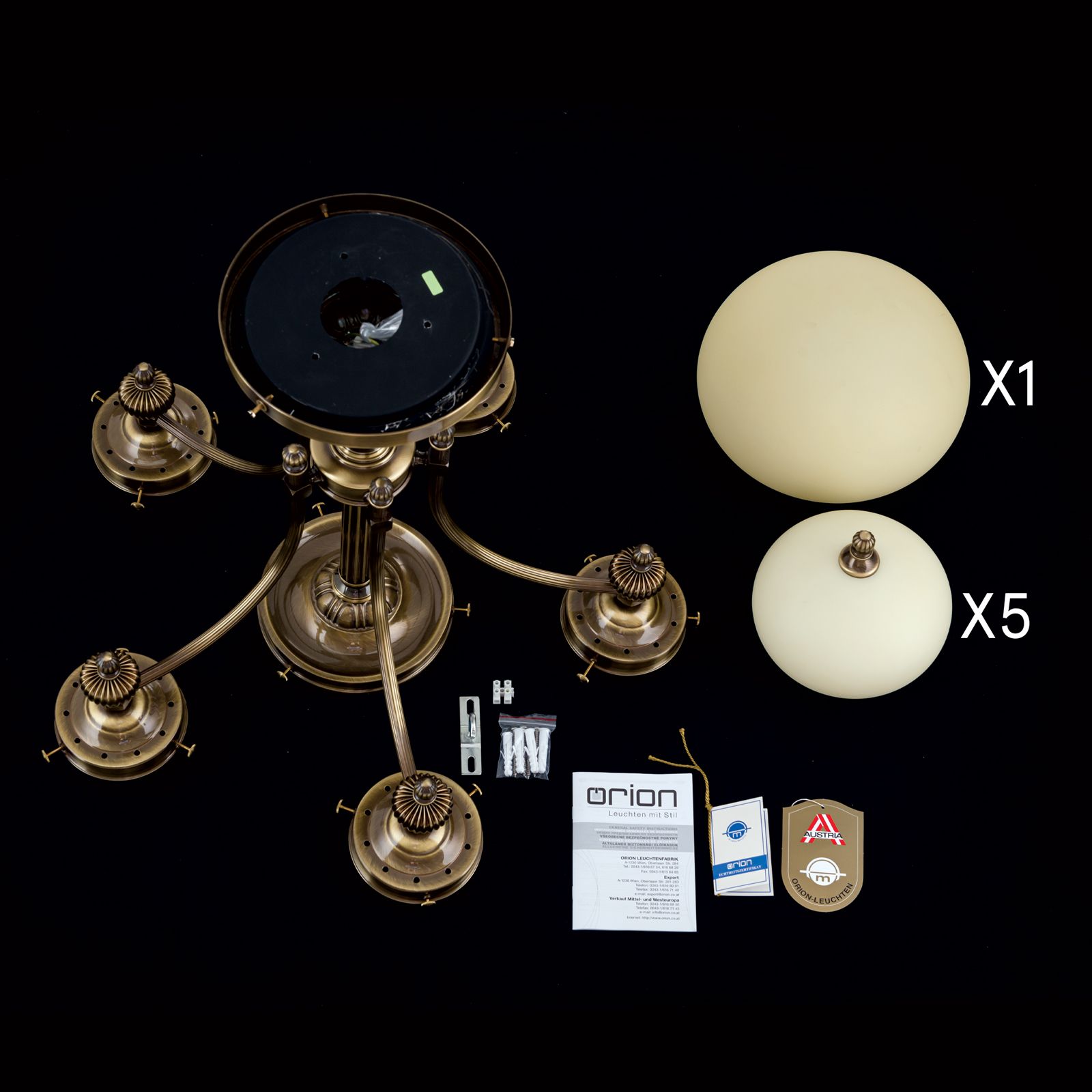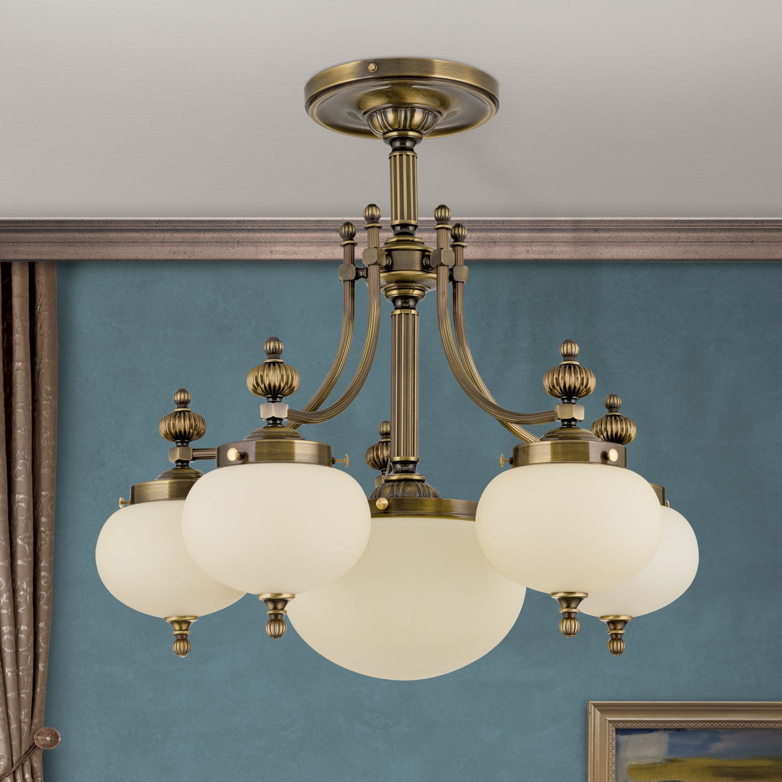 Ceiling light WIENER NOSTALGIE, 5+1 lamps, antique brass finish, champagne coloured glasses