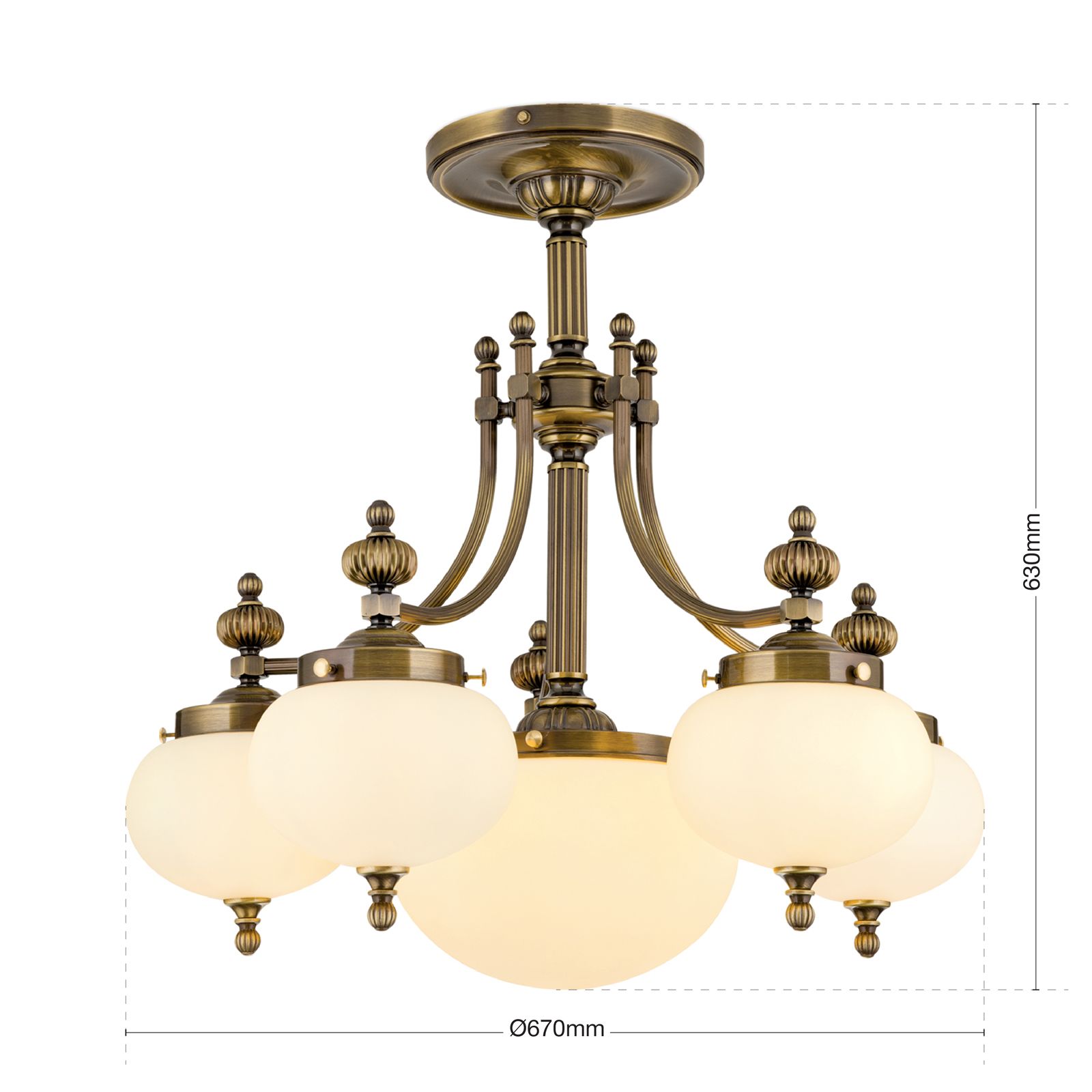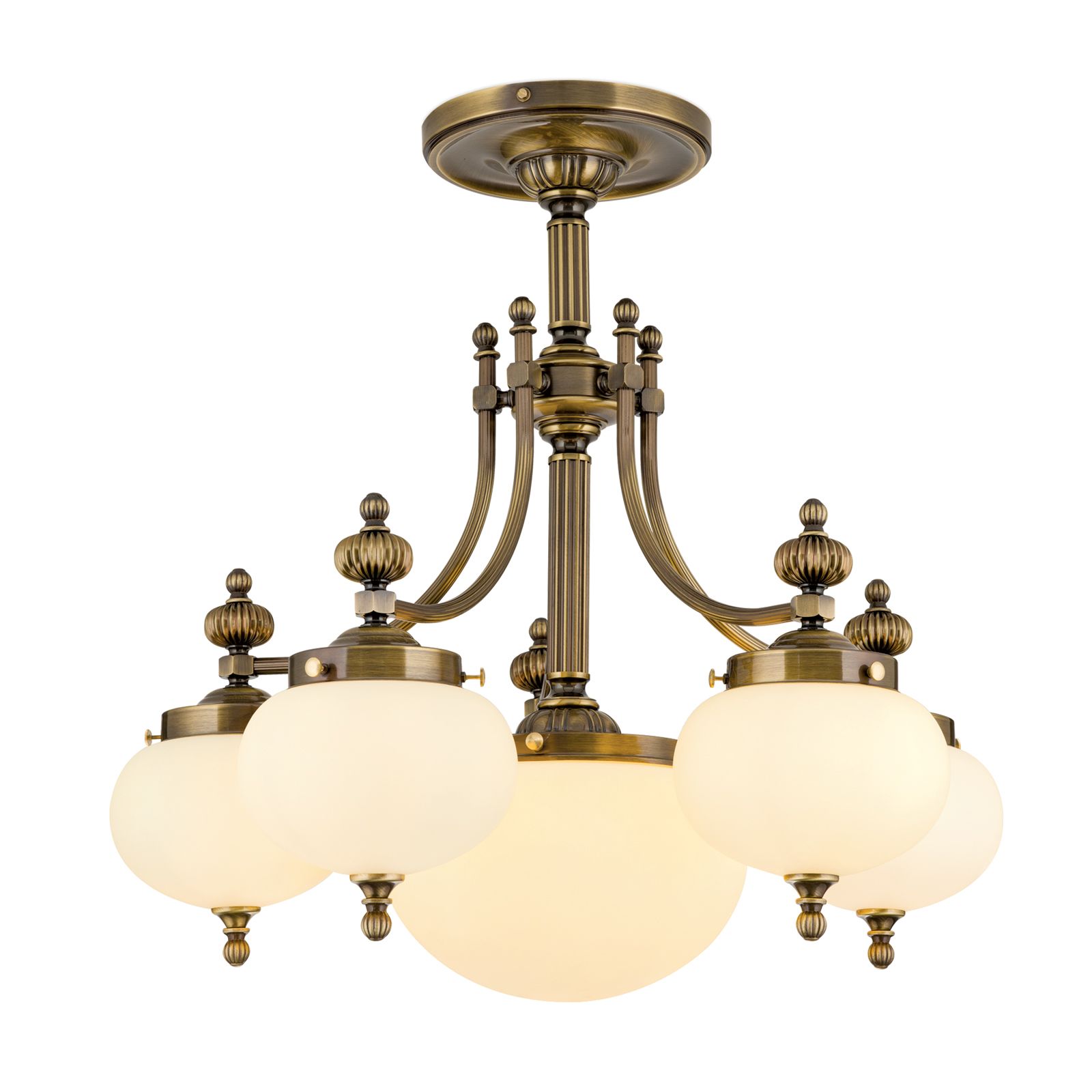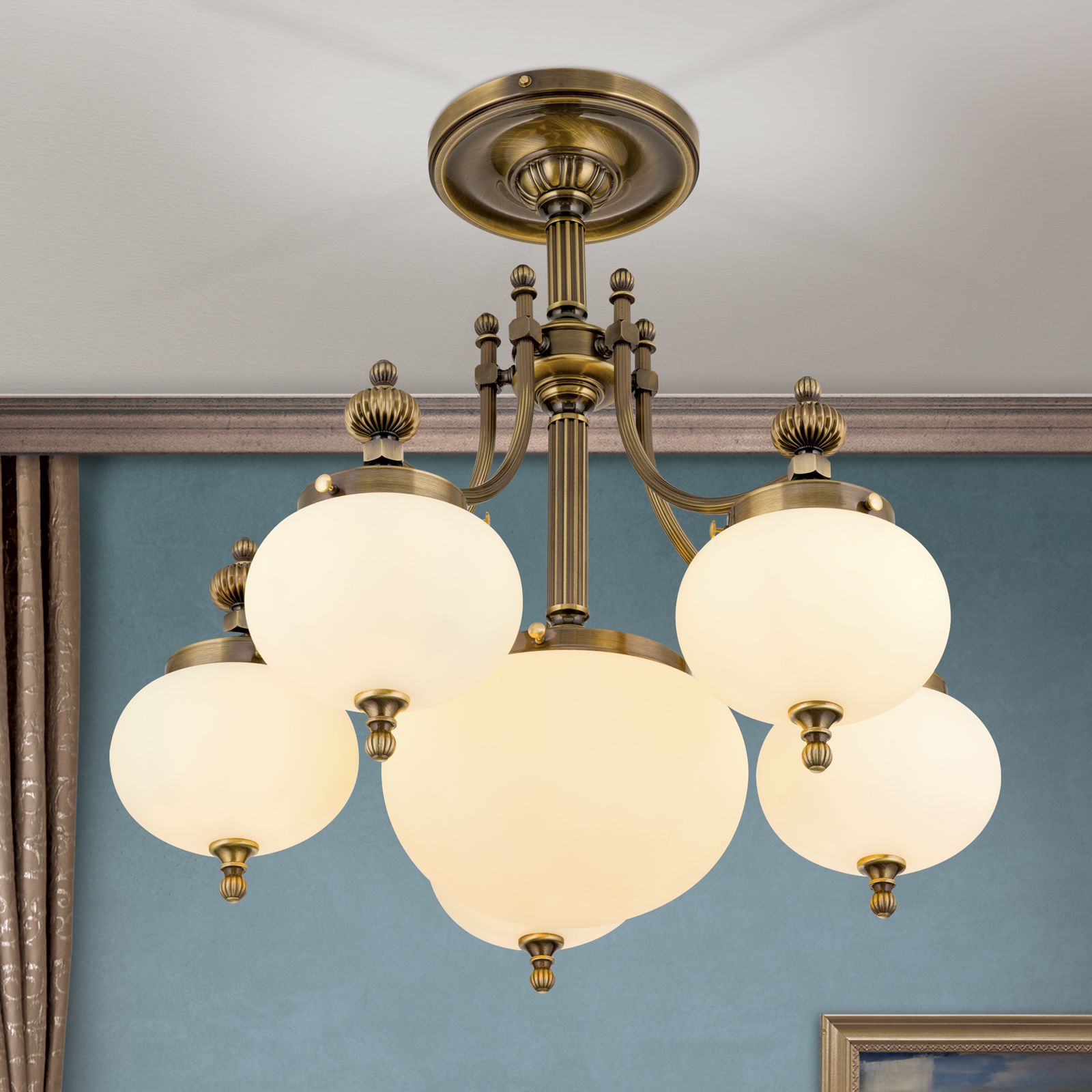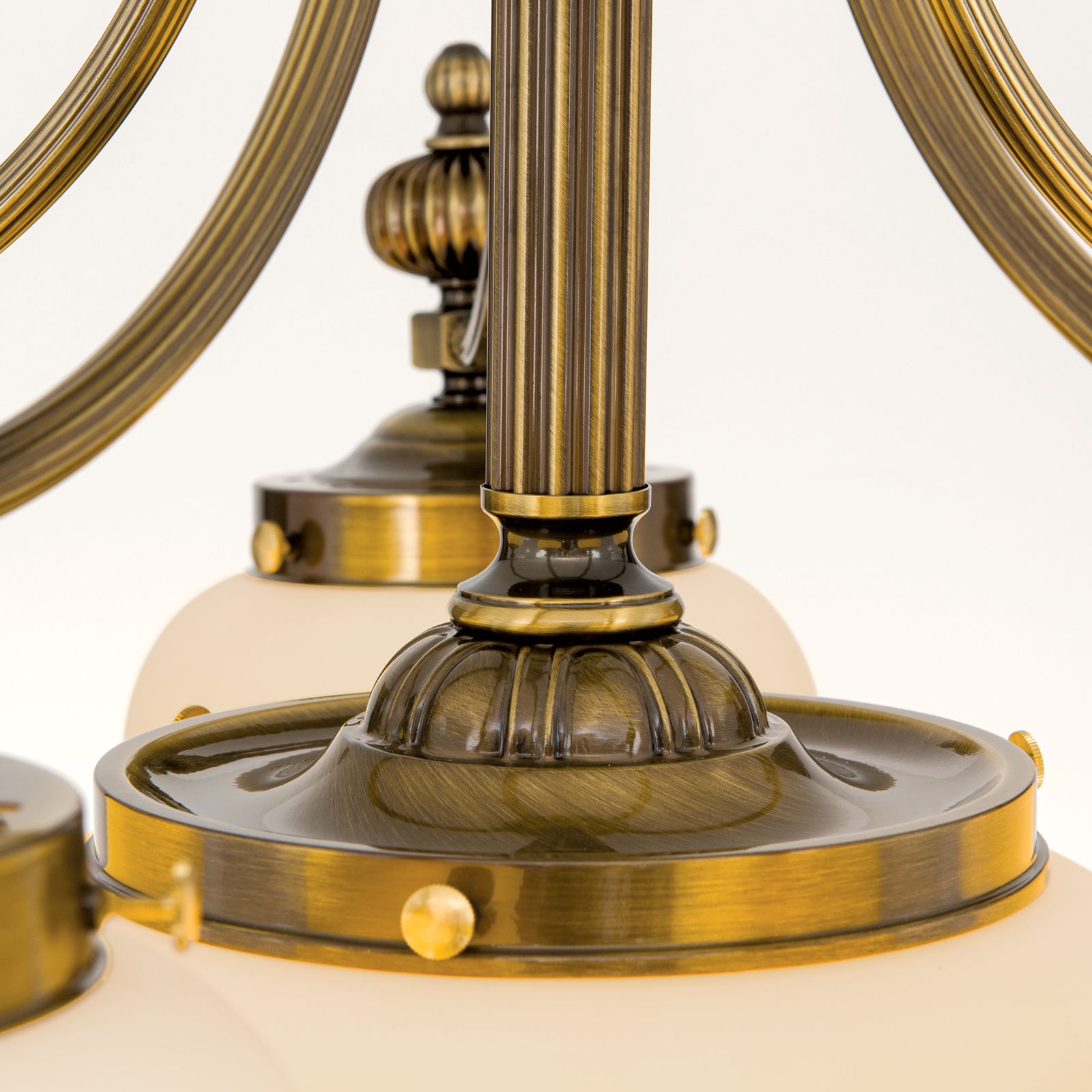 Ceiling light WIENER NOSTALGIE, 5+1 lamps, antique brass finish, champagne coloured glasses