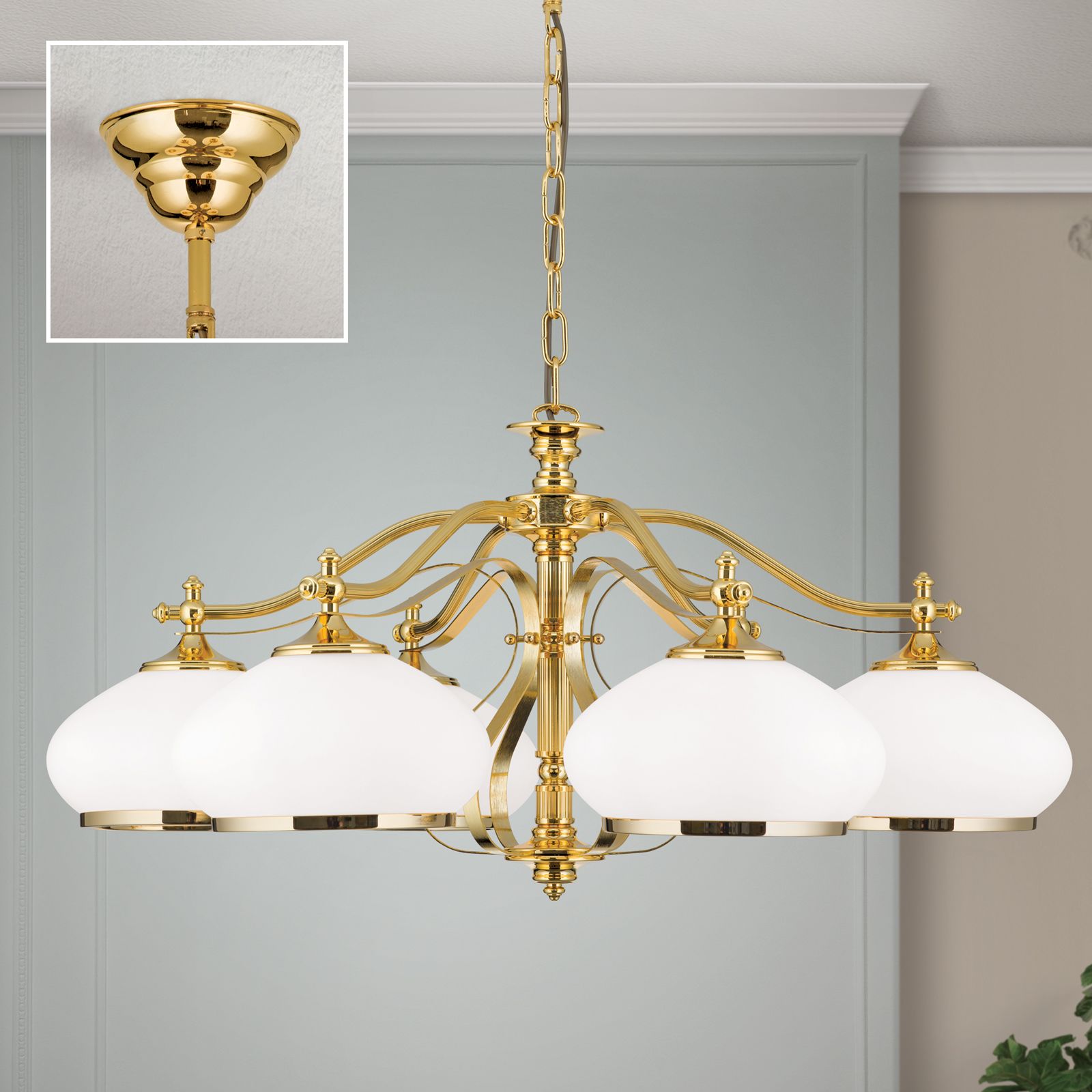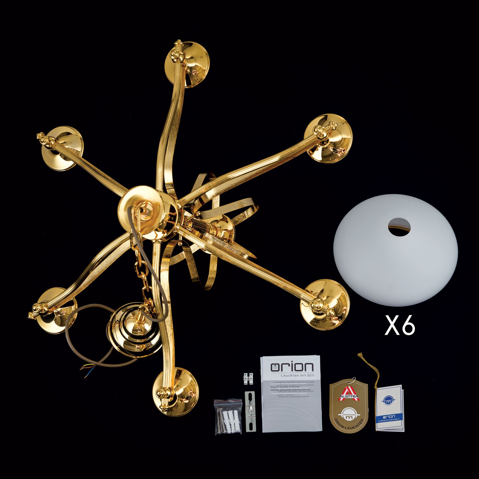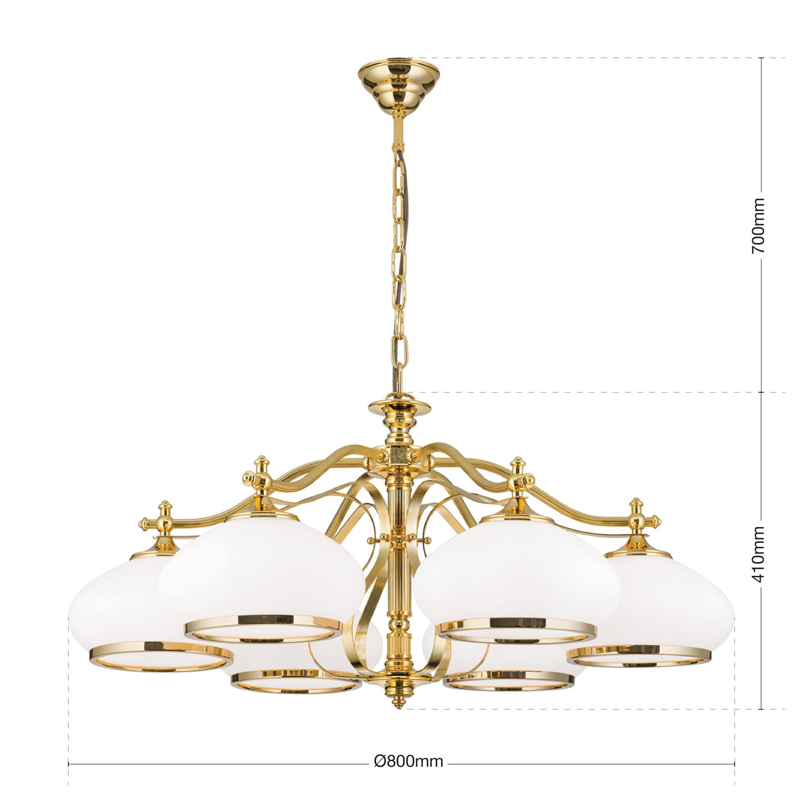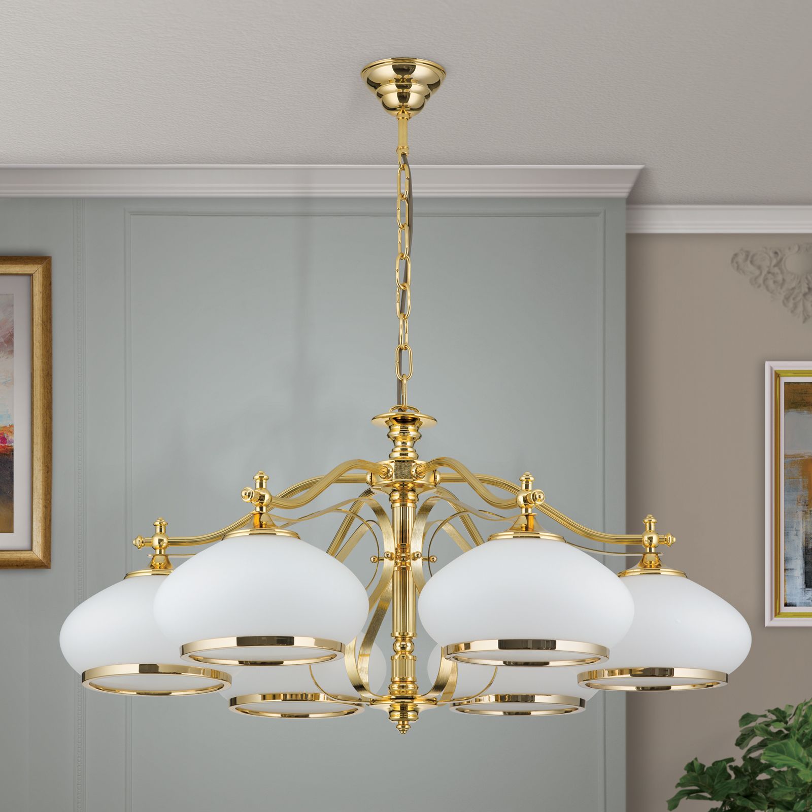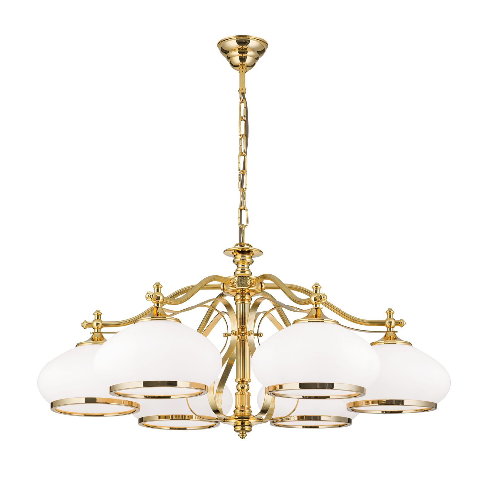 Chandelier EMPIRE, 6-flames, gold, with opal golden glass