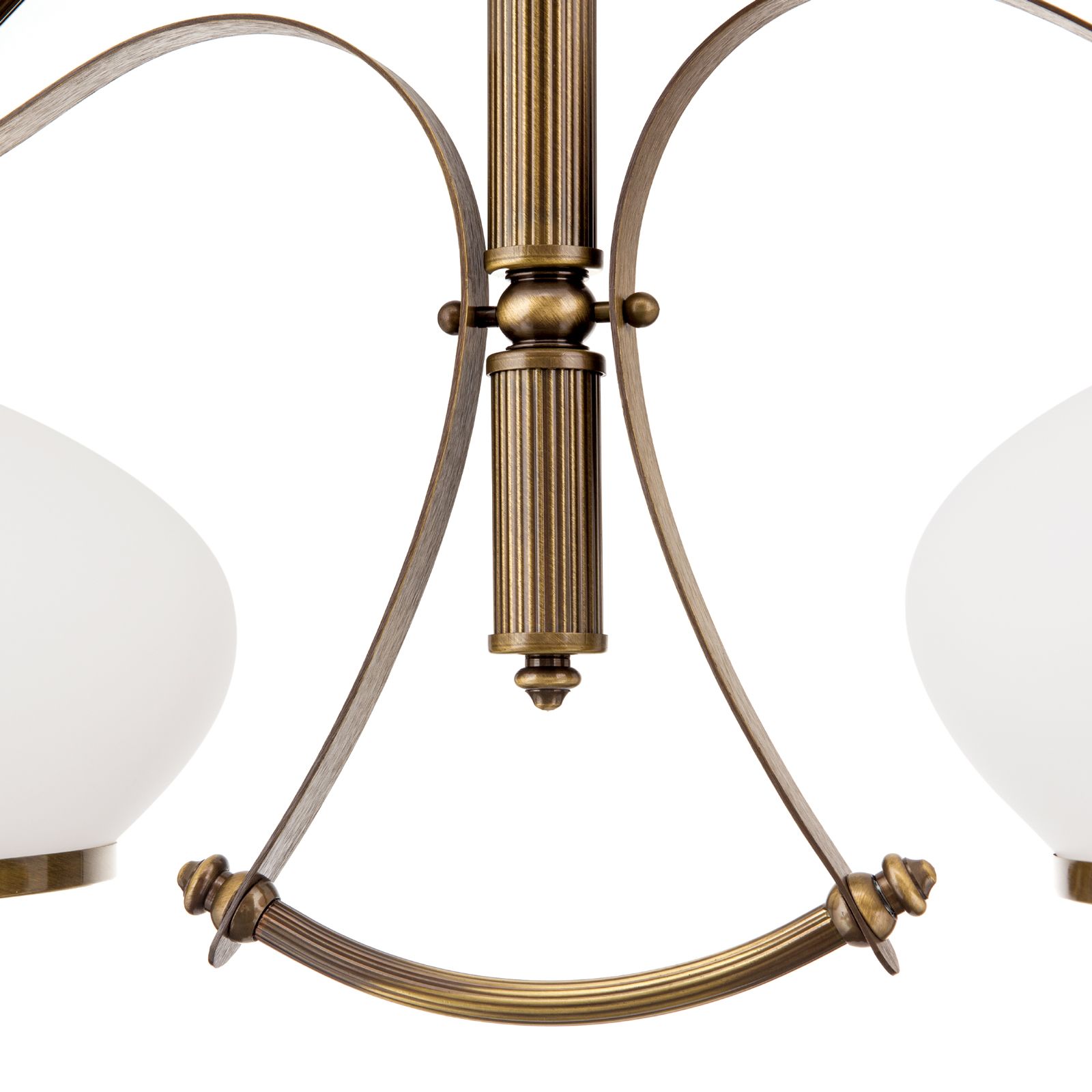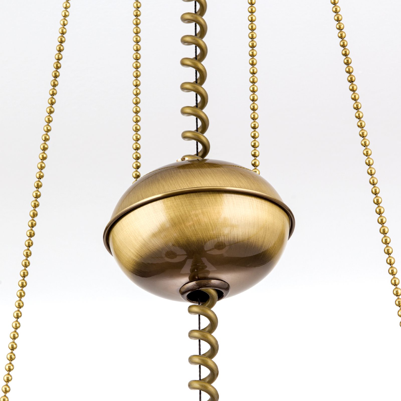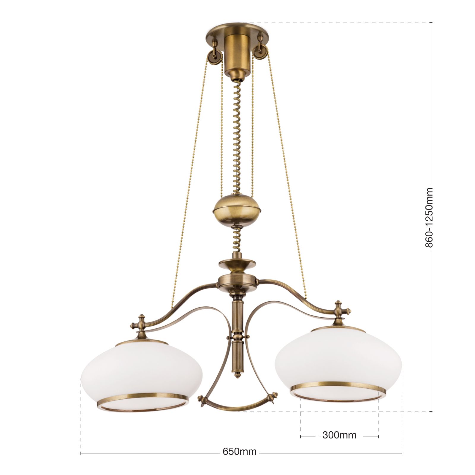 Chandelier EMPIRE, Antique Brass finish, with 2 opal glasses & pulley/weight