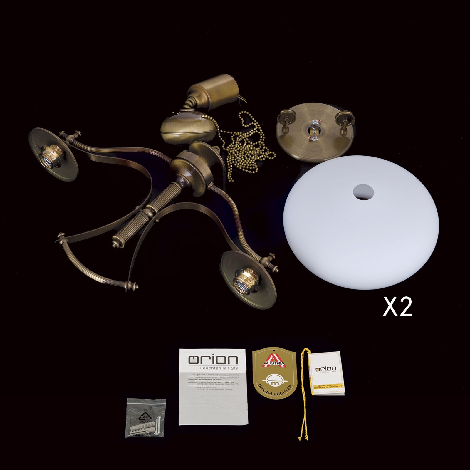 Bathe your home in timeless, elegant light with the EMPIRE chandelier, 2-lamps in patina. This exquisitely designed chandelier combines classic beauty with modern functionality and becomes an eye-catcher in any room.