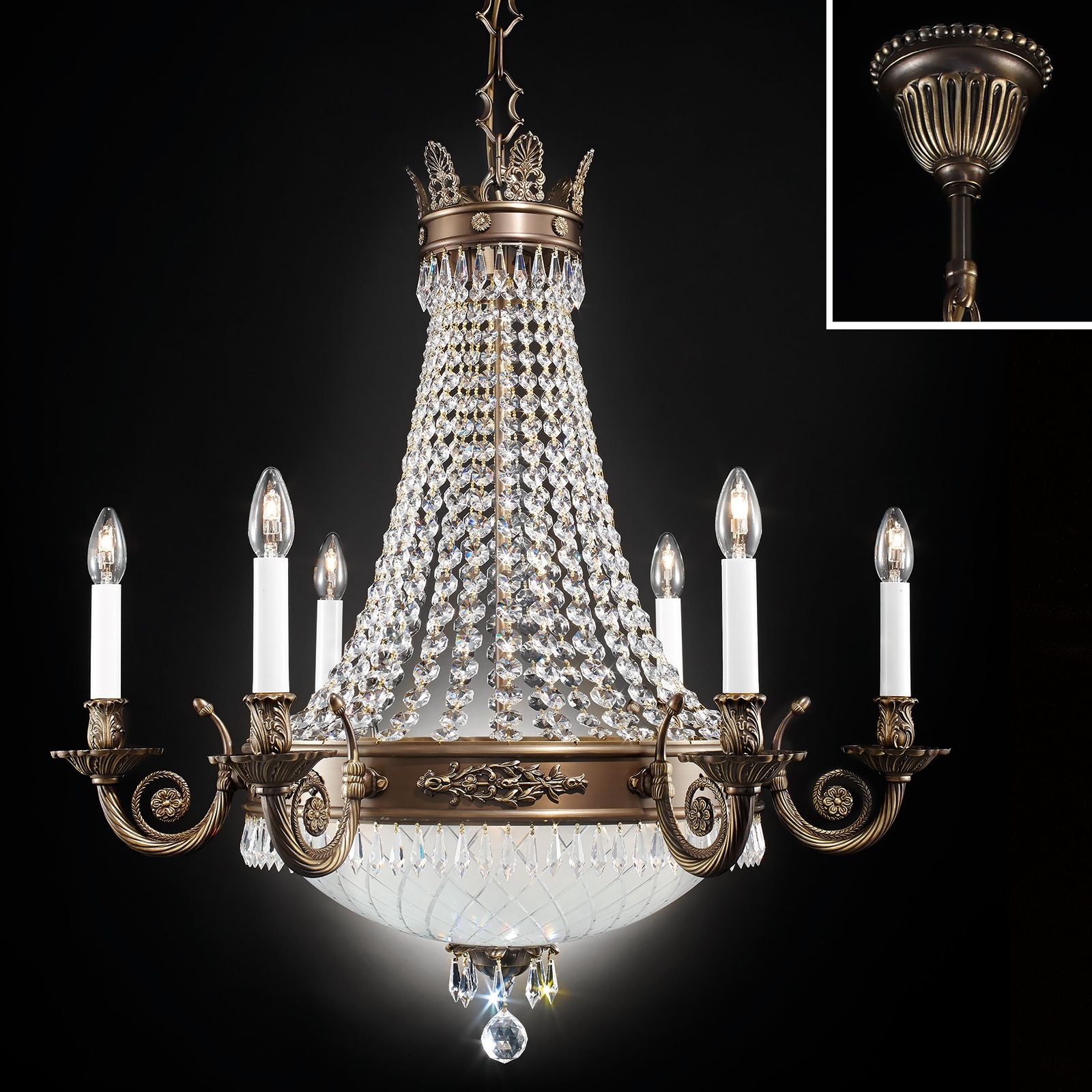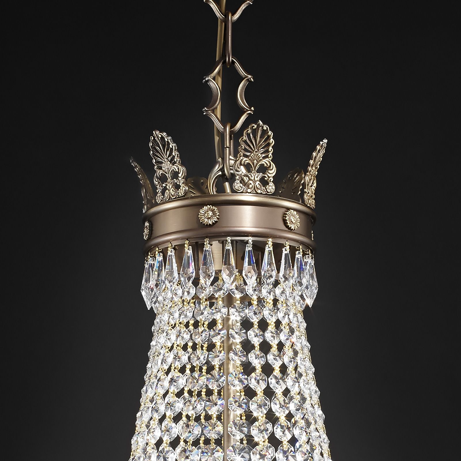 Chandelier EMPIRE CRYSTAL, 12-flames, antique patina
