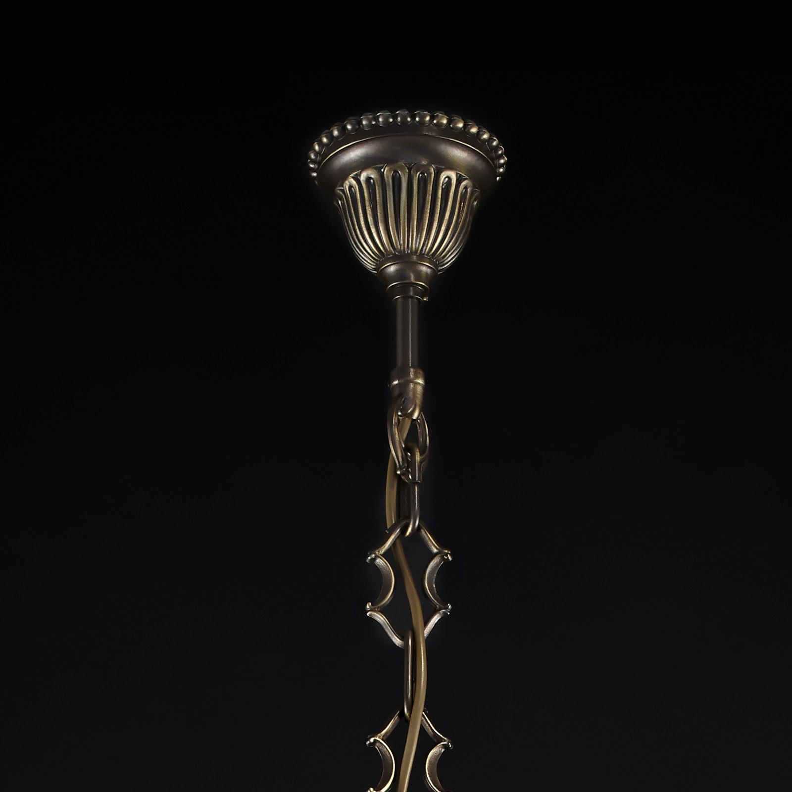 The chandelier is available in finishes: Old patina, Old silver and Gold.