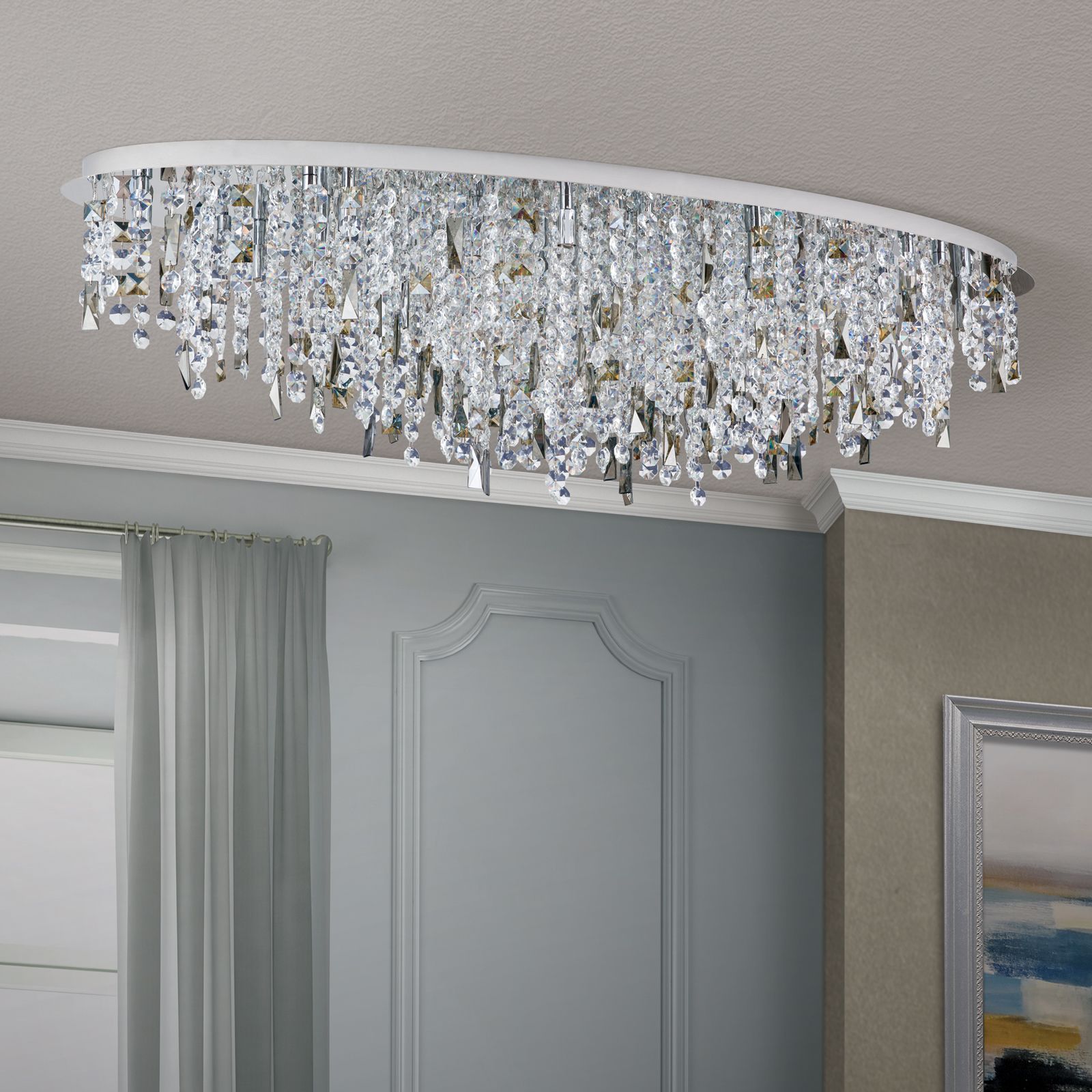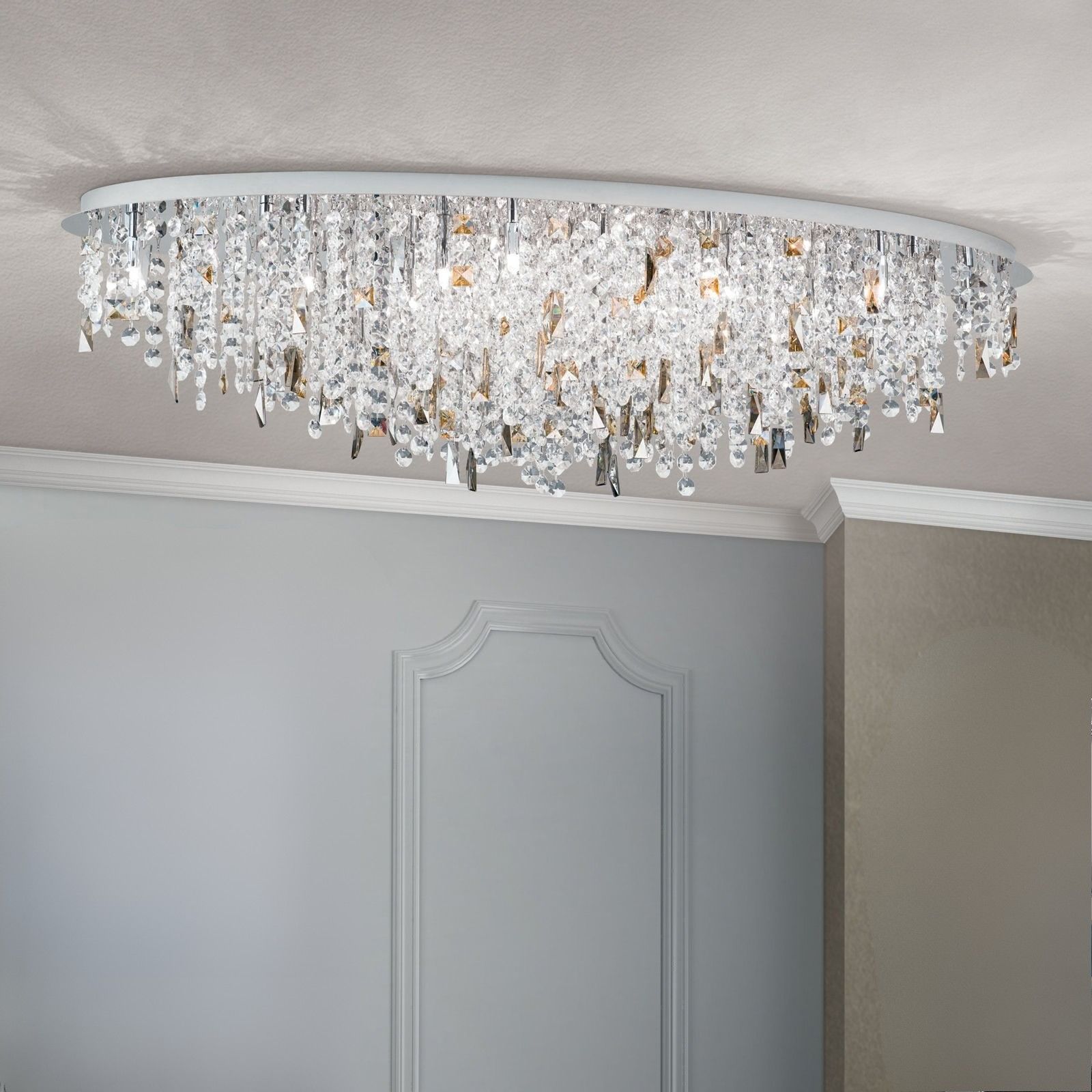 Crystal ceiling light CRYSTALRIVER 21-flames, chrome