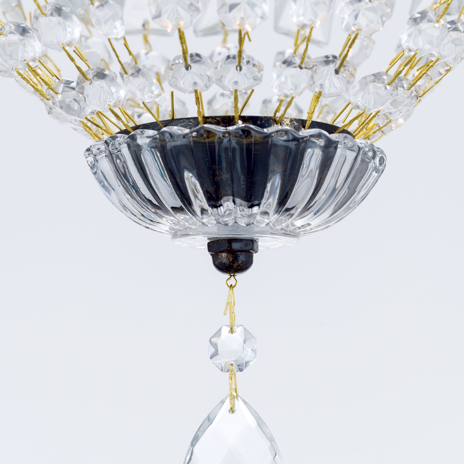 The delicate crystal pendant lamp with semi-cut crystals from the classic crystal light series ARILA completes the range of basket and ceiling chandeliers.