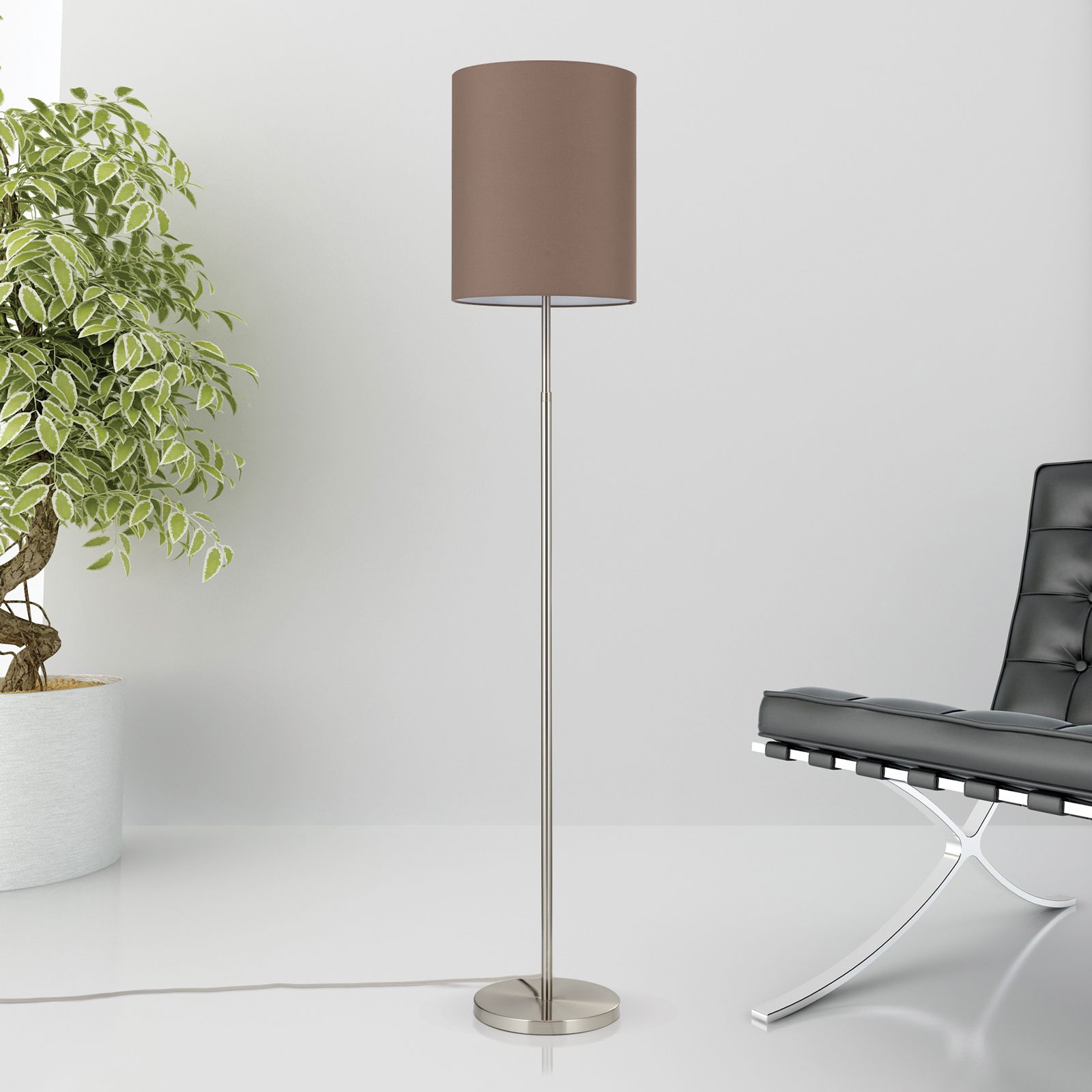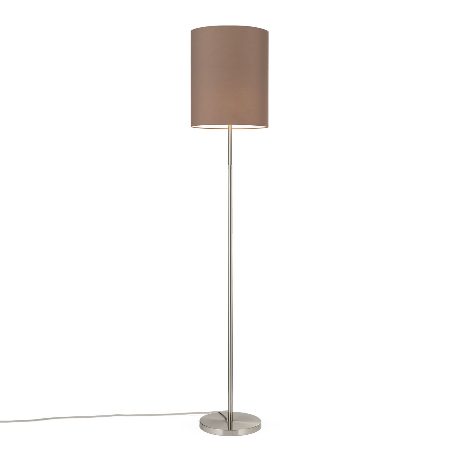 Floor lamp SHADE, satinated, height adjustable, with cylindrical brown shade