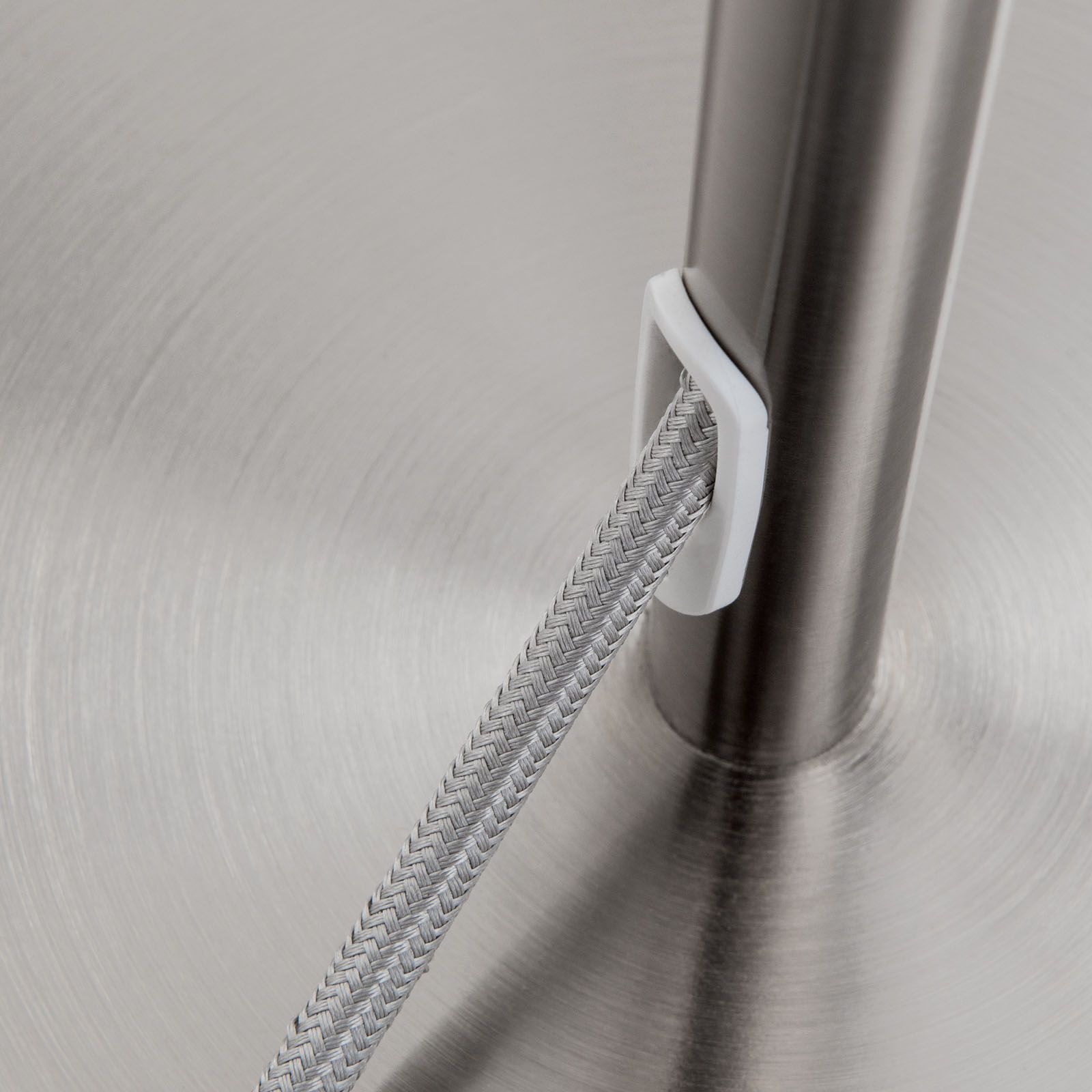 As it is height-adjustable, the solid brass frame can be extended up to a length of 190 making it flexible in use. A pull switch mounted in the shade, that also works as step dimmer, allows it to be operated comfortably even when seated. This way, the upward and downward lamps can also be switched on separately and different brightness levels achieved.