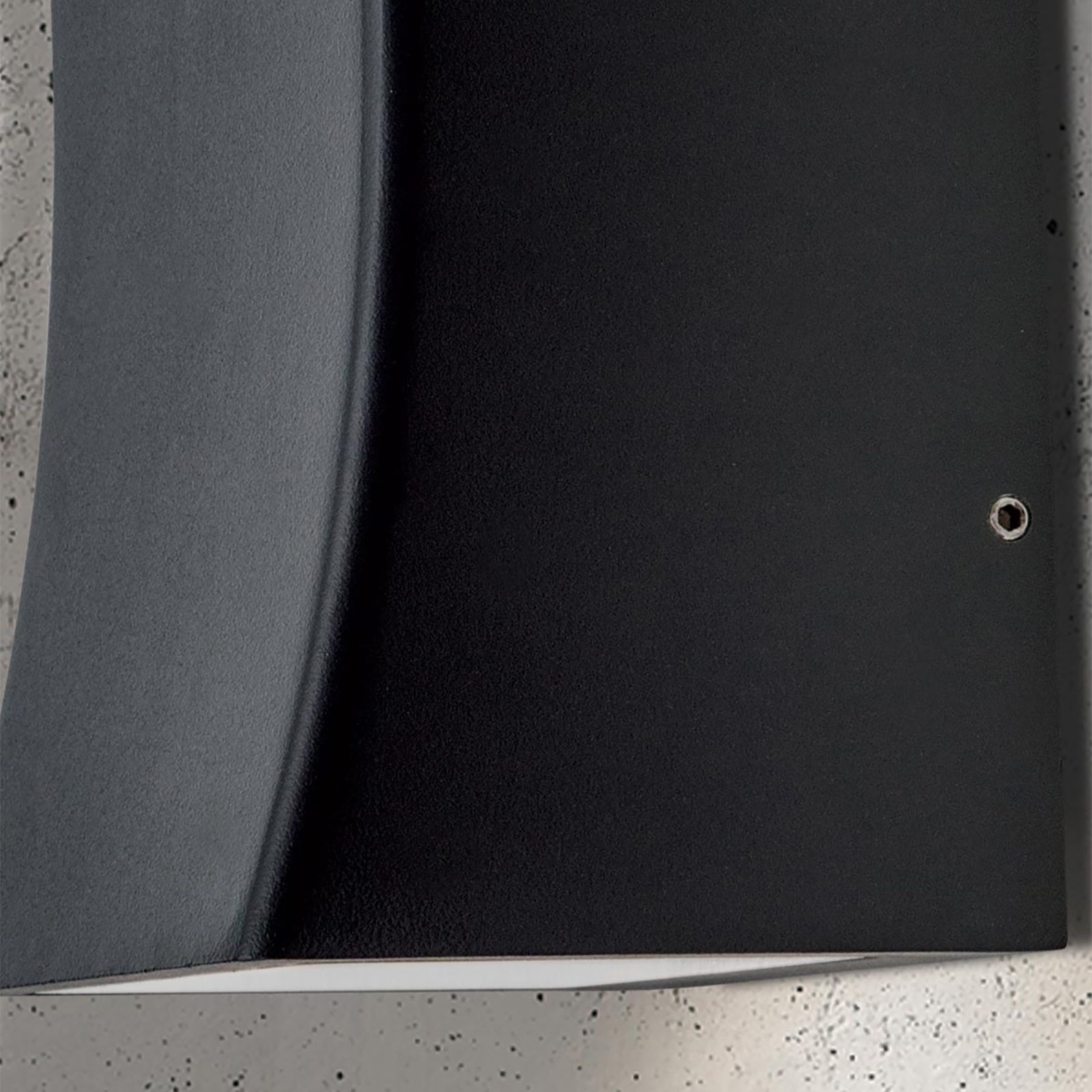 LED outdoor light NAOK is a modern lighting element for outdoor use. With its discreetly curved shape and anthracite finish, it fits into many surroundings and embellishes every facade. The warm white light colour with a 3000 Kelvin colour temperature creeps upwards and downwards along the wall, creating beautiful grazing light effects.