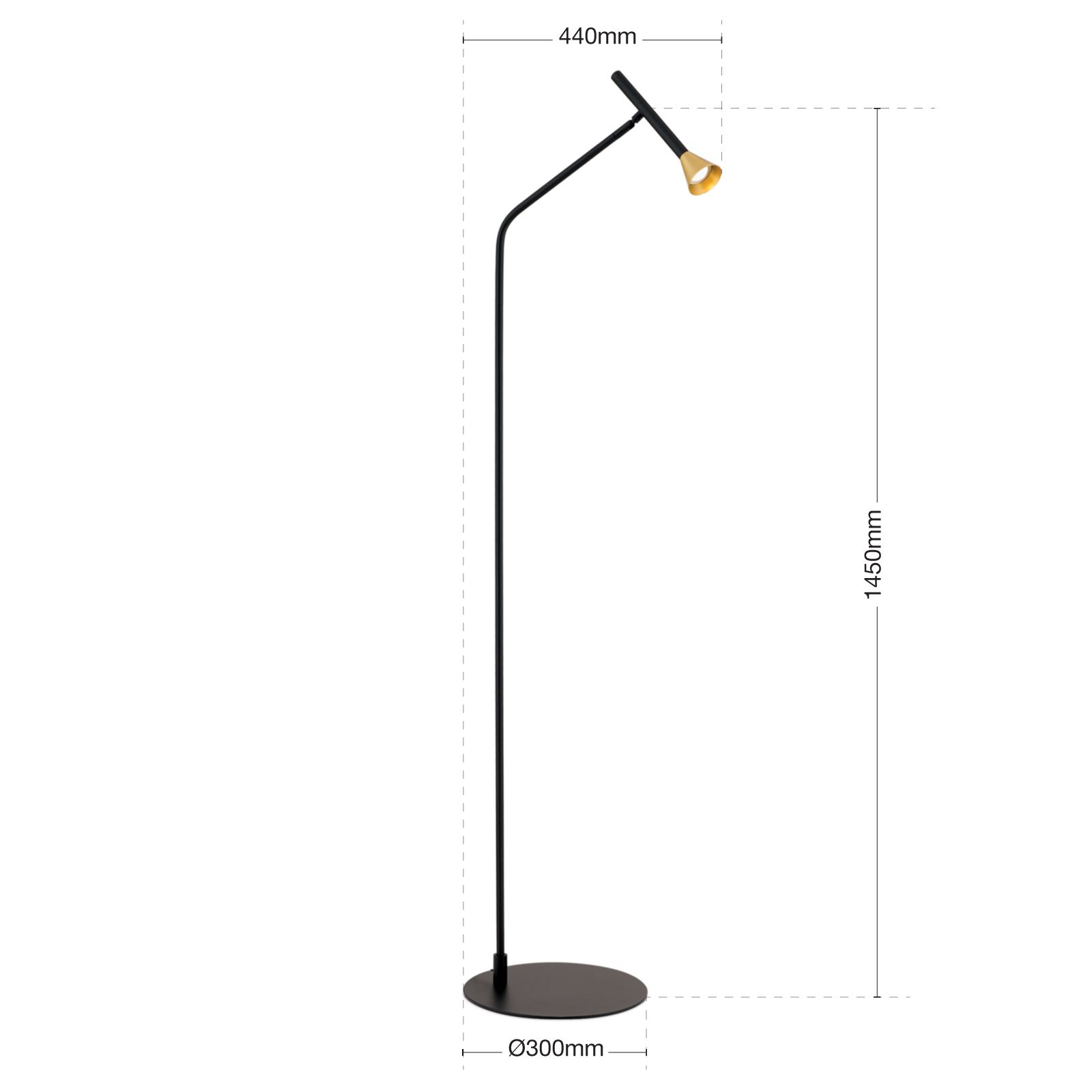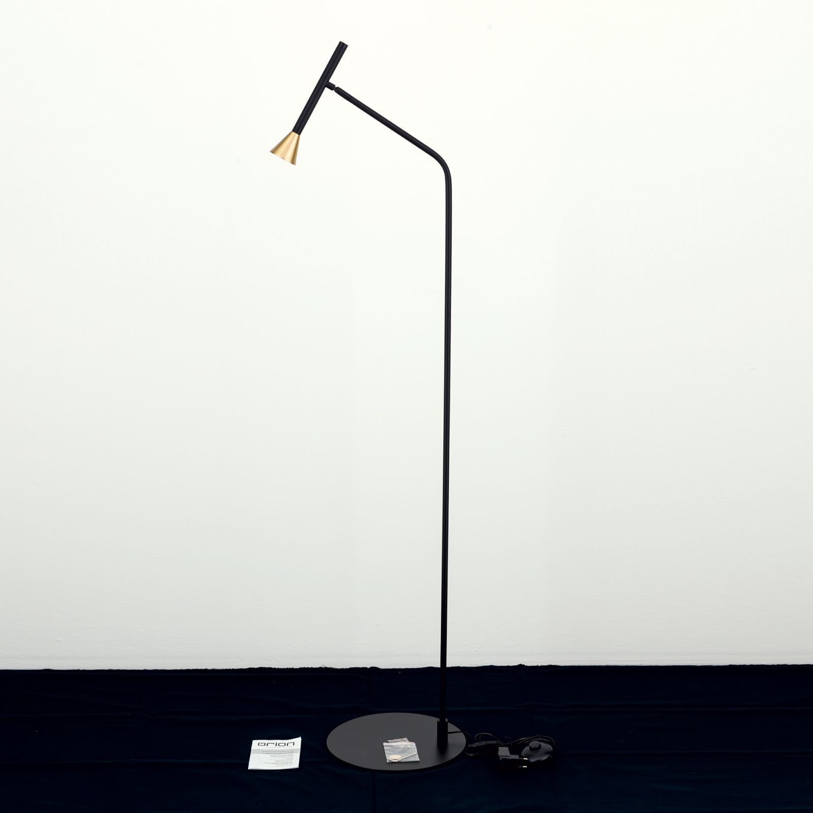 LED floor lamp ODEON, black with brass shade