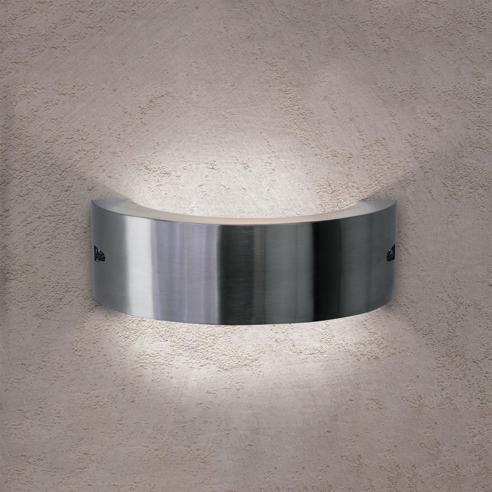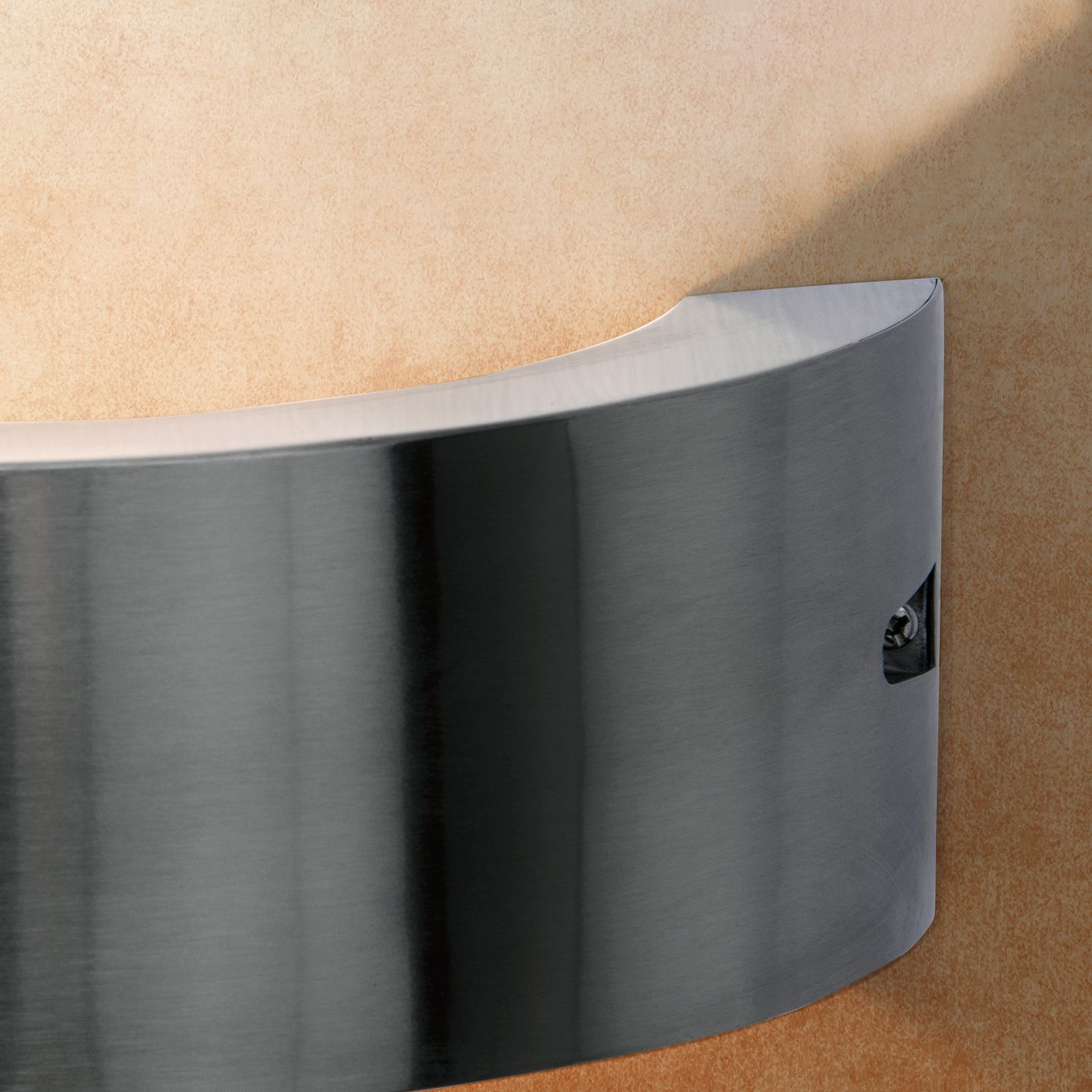 The wall light is equipped with modern LED technology and 470 lumens light output. Warm white LEDs provide a pleasant and friendly atmosphere on the way to entrance or garage. Permanently installed LEDs can be replaced by the user if required. The product an IP44 protection class against foreign particles and splash water from all directions.