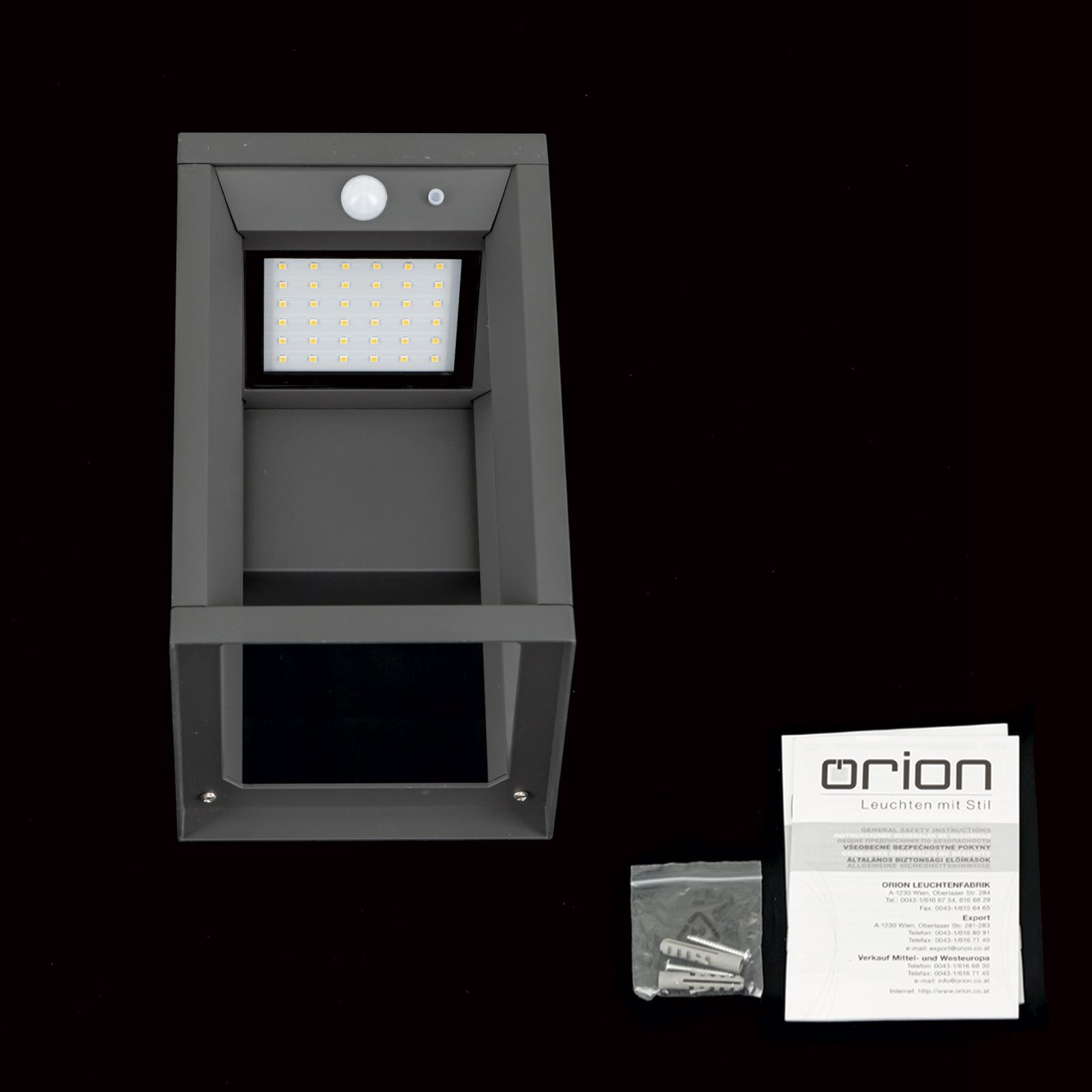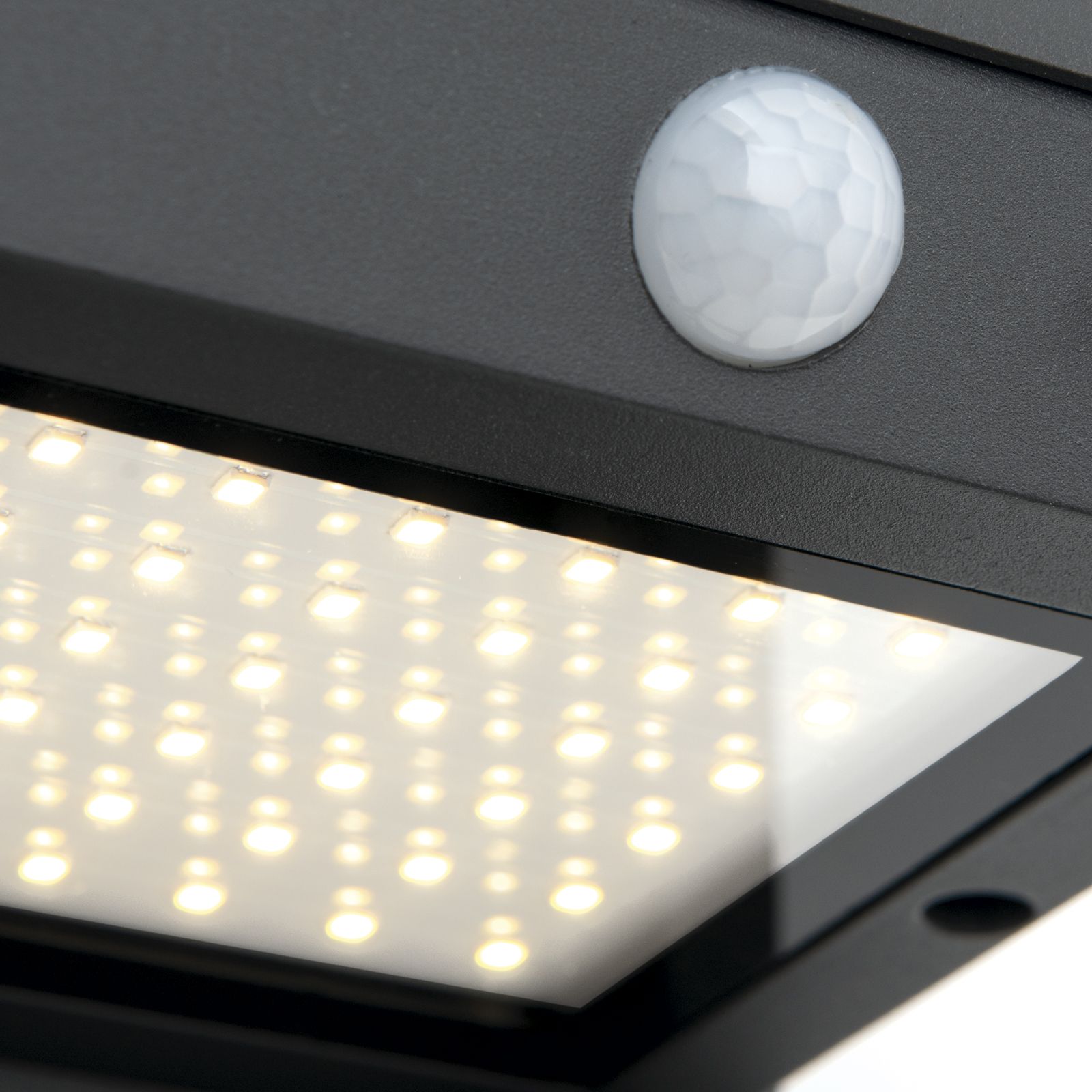 The anthracite-coloured LED solar outdoor wall light VOLTA is the perfect choice for energy-efficient outdoor lighting. Its modern design with a top-mounted solar panel and LEDs mounted on the inside at the top of the light provides pleasant, indirect lighting.