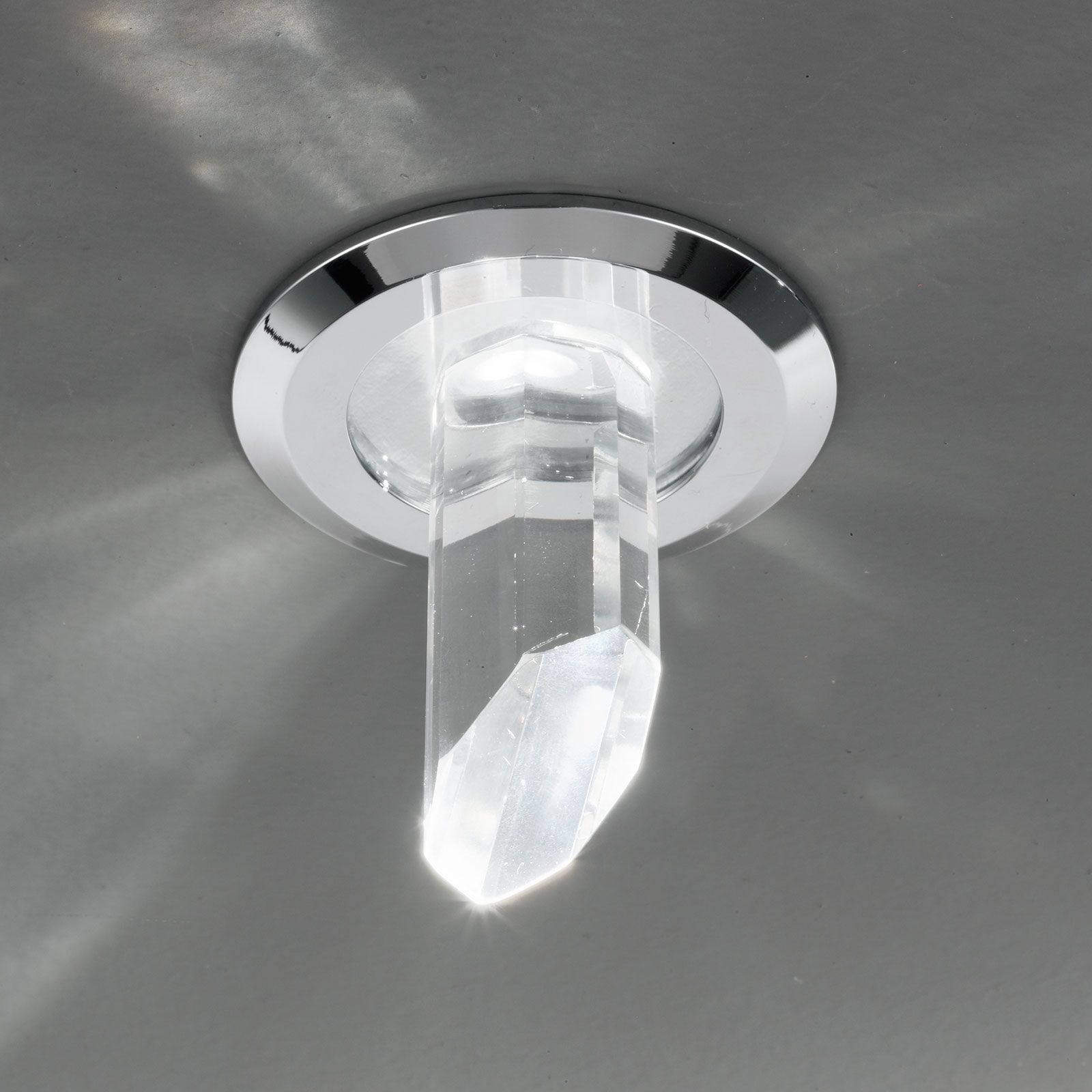 The recessed luminaire from the KRISTA series can be easily combined with unagitatedly simple furnishings thanks to its balanced appearance. The cap is made of crystal, the luminaire body of metal and has a surface finish in satin/nickel matt. The quality of the crystal cover is equivalent to K9 crystal glass.