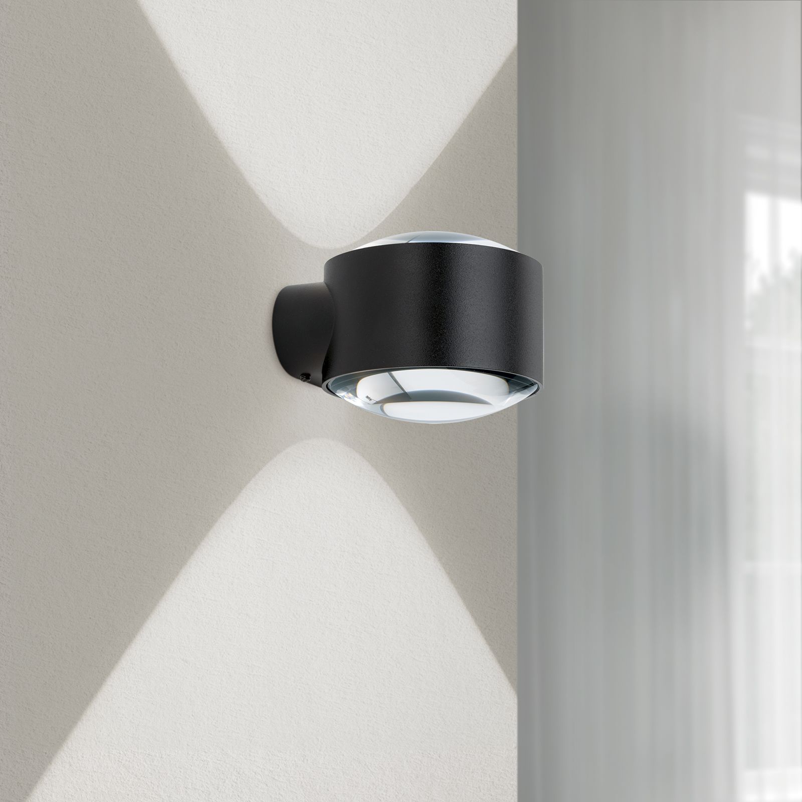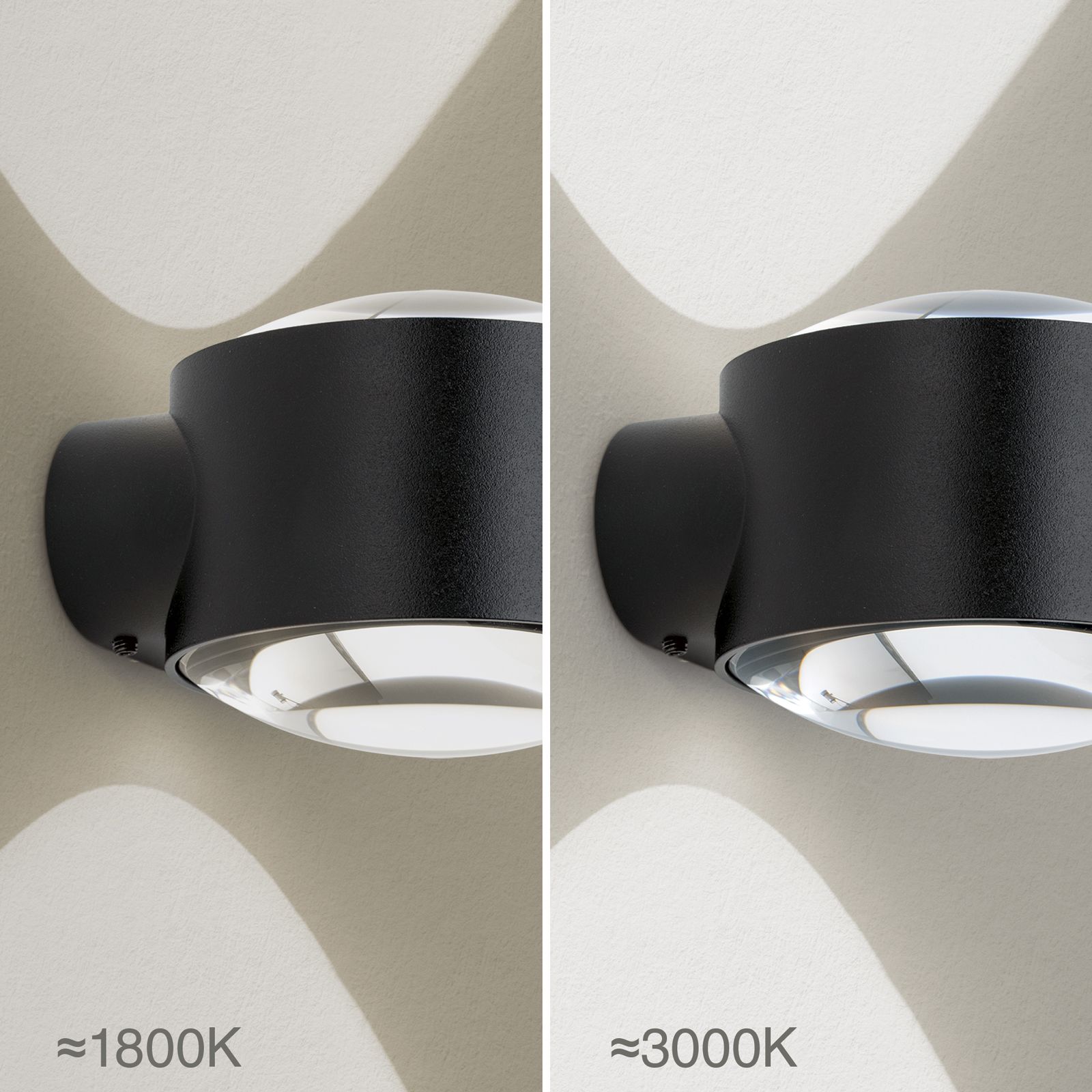 The innovative Dim to Warm technology allows you to flexibly adjust the lighting. The colour temperature range of 1800 to 3000 Kelvin allows you to regulate the brightness and warmth of the light to suit your needs, creating a pleasant atmosphere. The TATRA wall light shines both upwards and downwards, ensuring uniform and stylish illumination of your exterior walls.