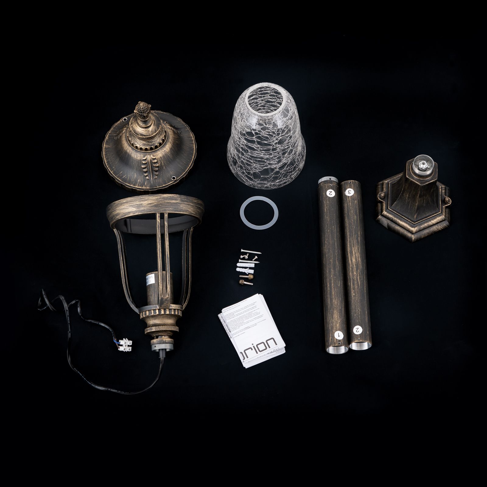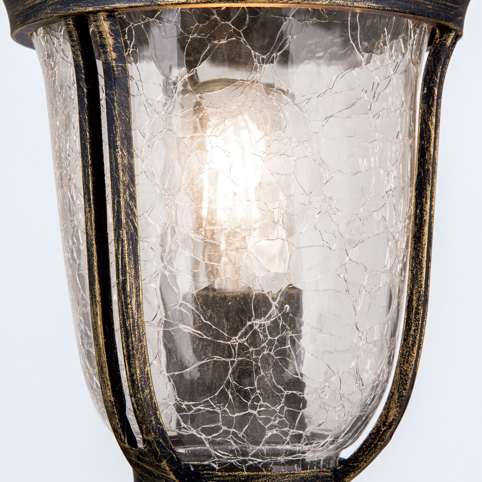 Numerous decorative elements such as fluting, field friezes and a pine cone crowning the lantern, together with frosted glass lantern shade and patina surface finish using, enhance its antique appearance.