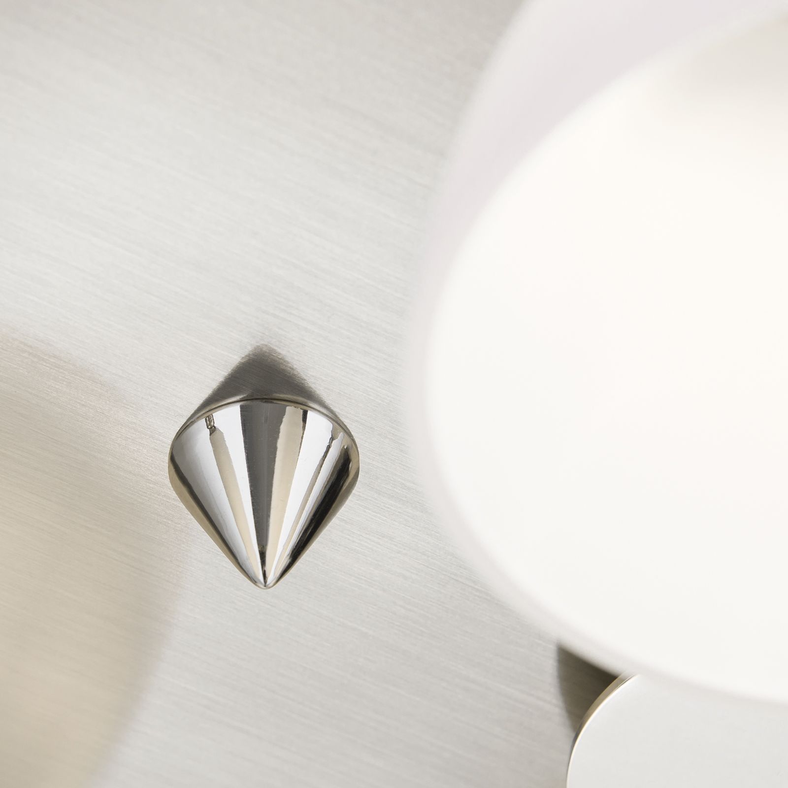 Die kelchförmigen, nach unten gerichteten Schirme sind aus Opalglas gefertigt. Sie bringen viel Licht nach unten und verteilen es gleichzeitig homogen und weich im Raum. So ist die Deckenleuchte die ideale Wahl, um ein Esszimmer und einen darunter aufgestellten Tisch zu beleuchten.