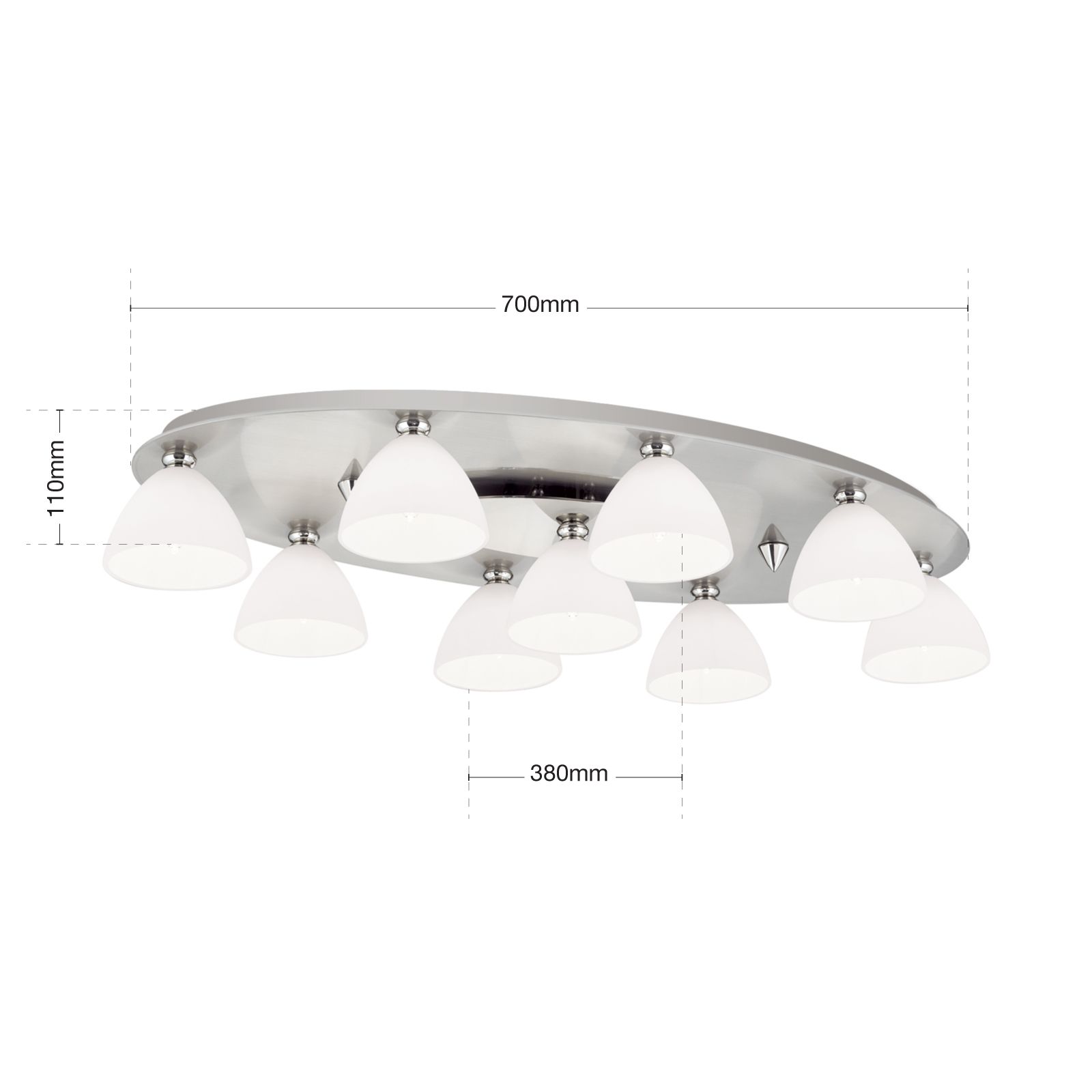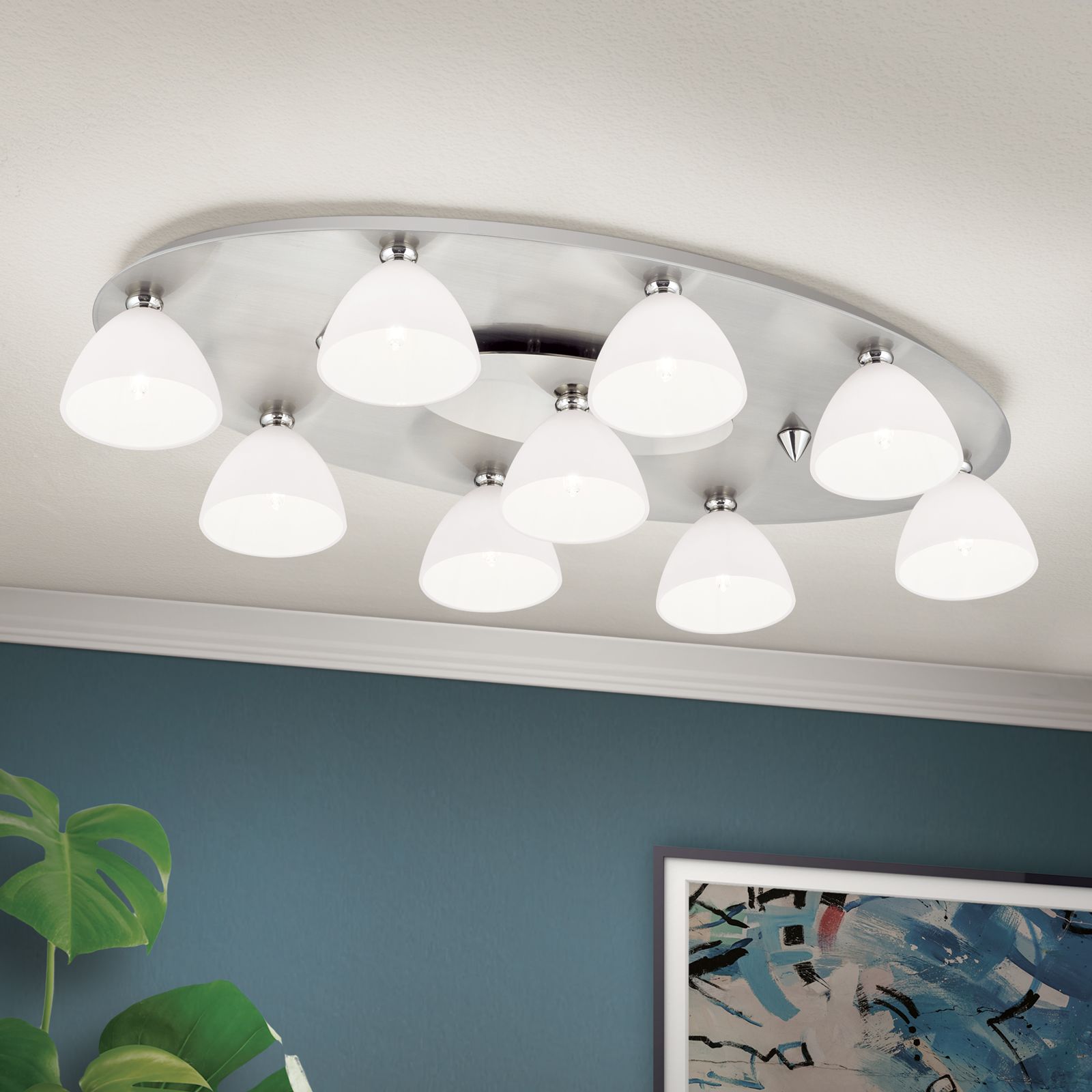 Deckenleuchte OPALDESIGN, 9-flammig, Satin, mit Opalgläsern