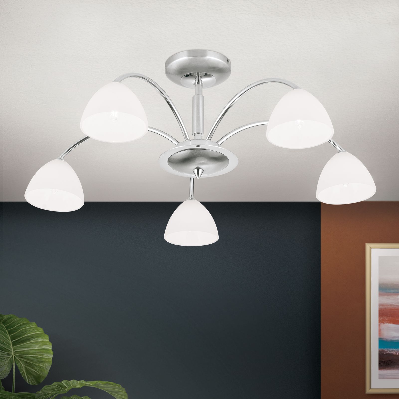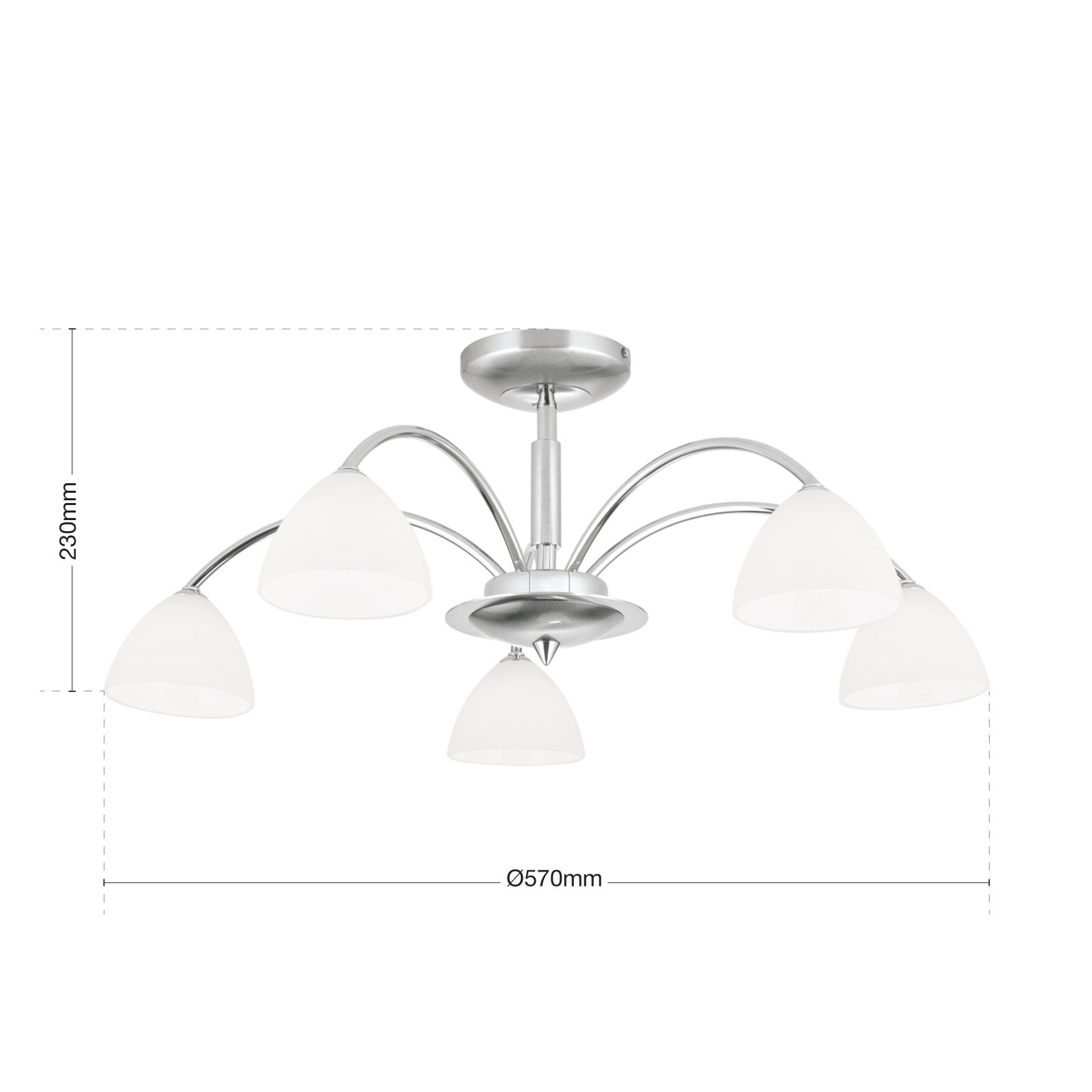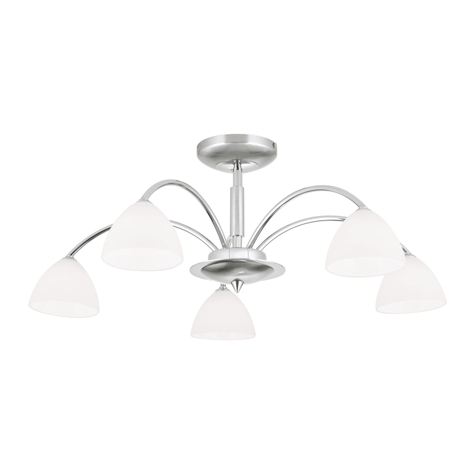 Deckenluster OPALDESIGN, 5-flammig, Satin, mit Opalgläsern