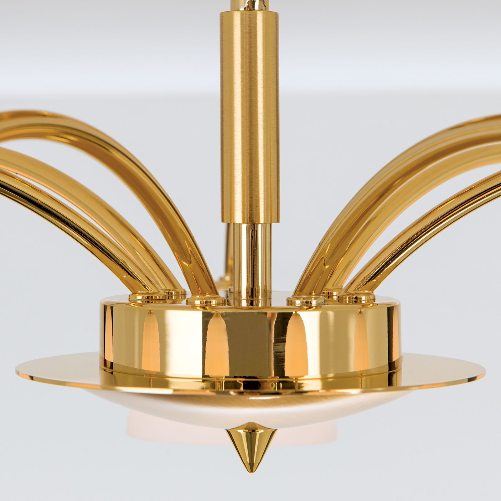 Die 7-flammige Deckenleuchte Opaldesign besticht durch den Einsatz hochwertiger Materialien wie Messing und Glas und ihr schlichtes und funktionales Design.