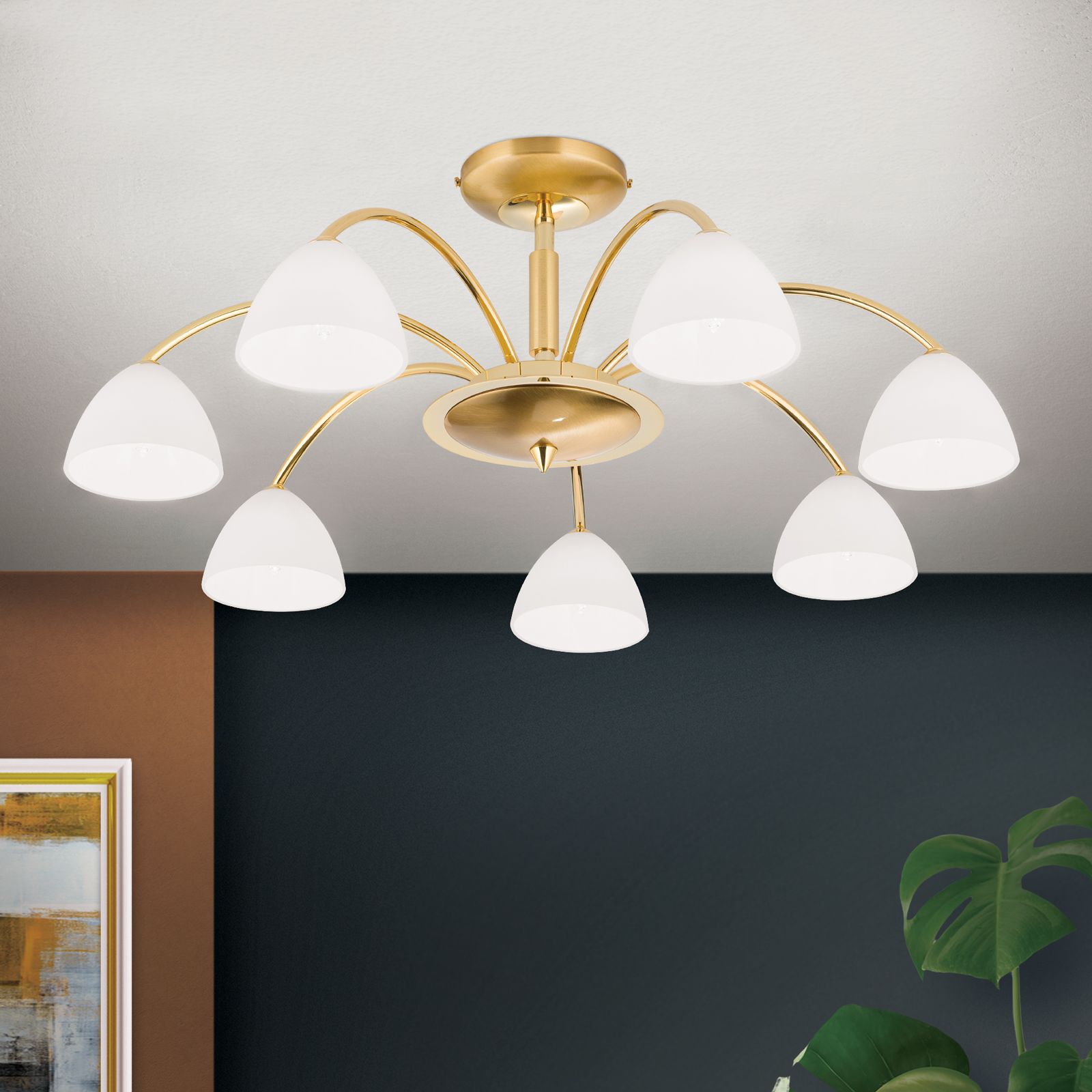 Deckenluster OPALDESIGN, 7-flammig, Gold, mit Opalgläsern