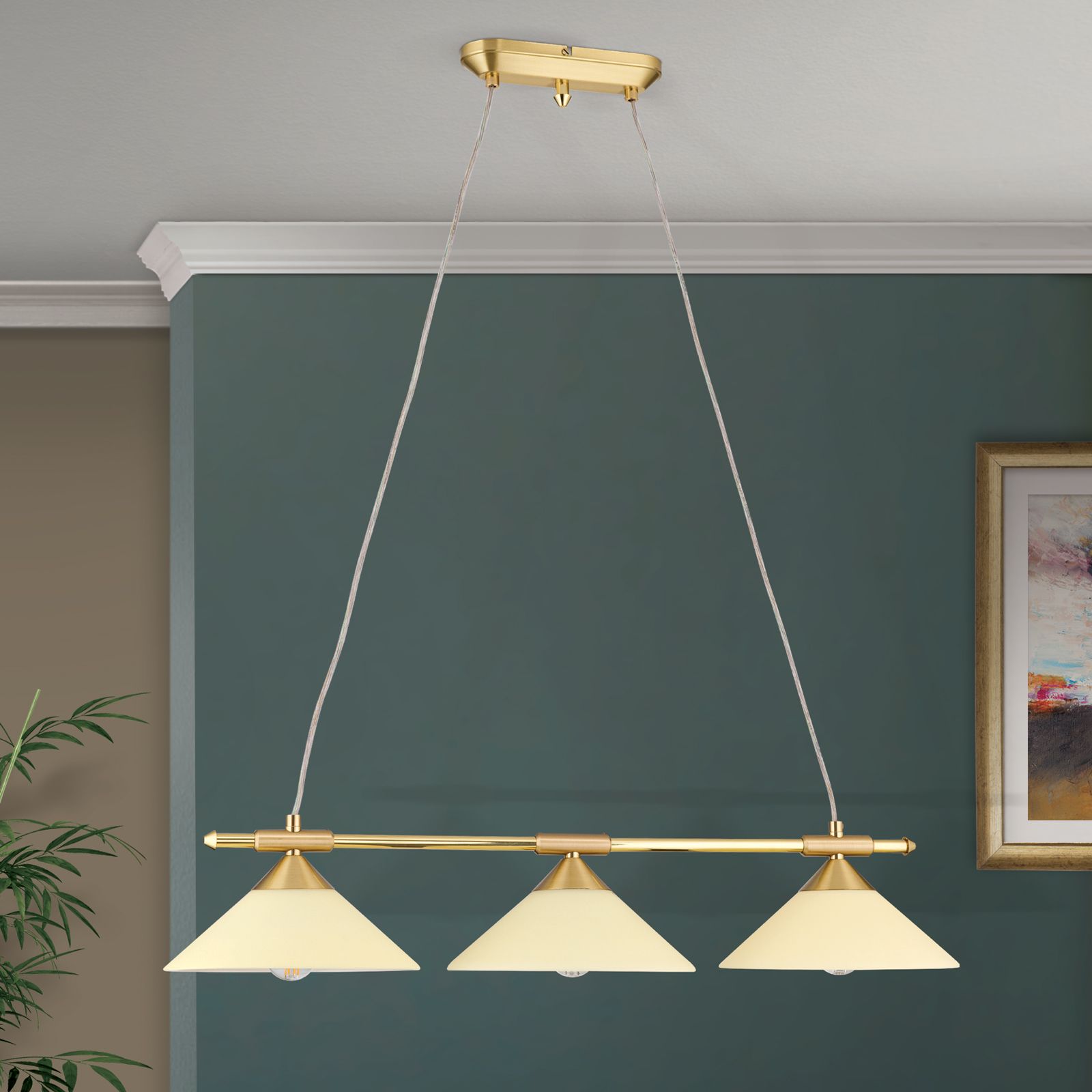 Hängeleuchte ARTDESIGN, 3-flammig, Messing matt, mit champagner färbigen Gläsern