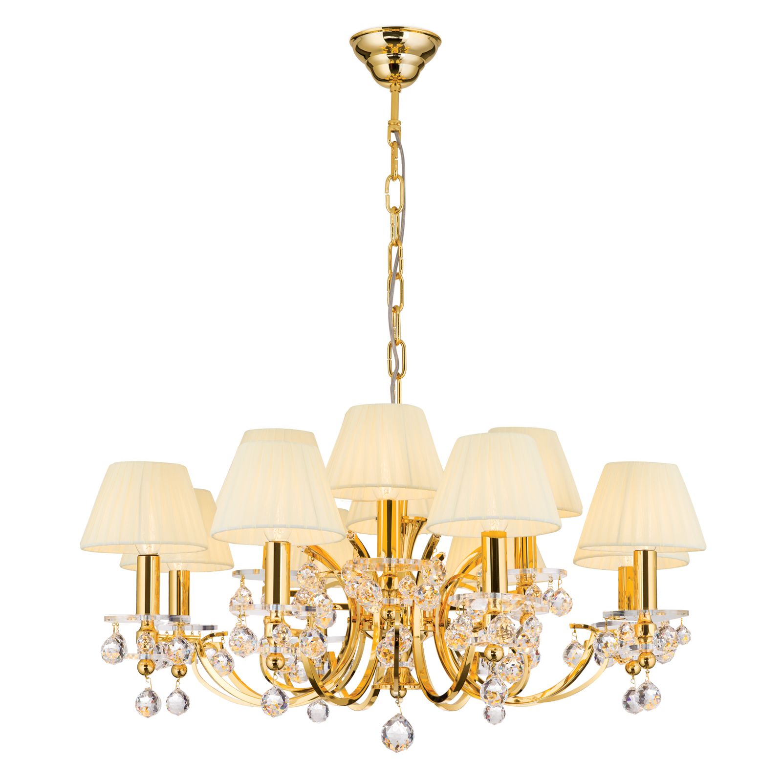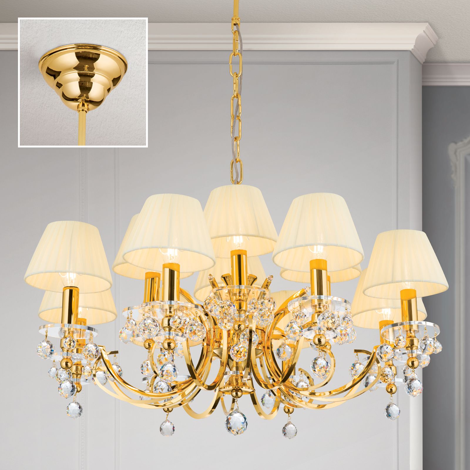 Luster KRISTALLDESIGN, 12-flammig, Gold mit champagnerfarbigen Schirm