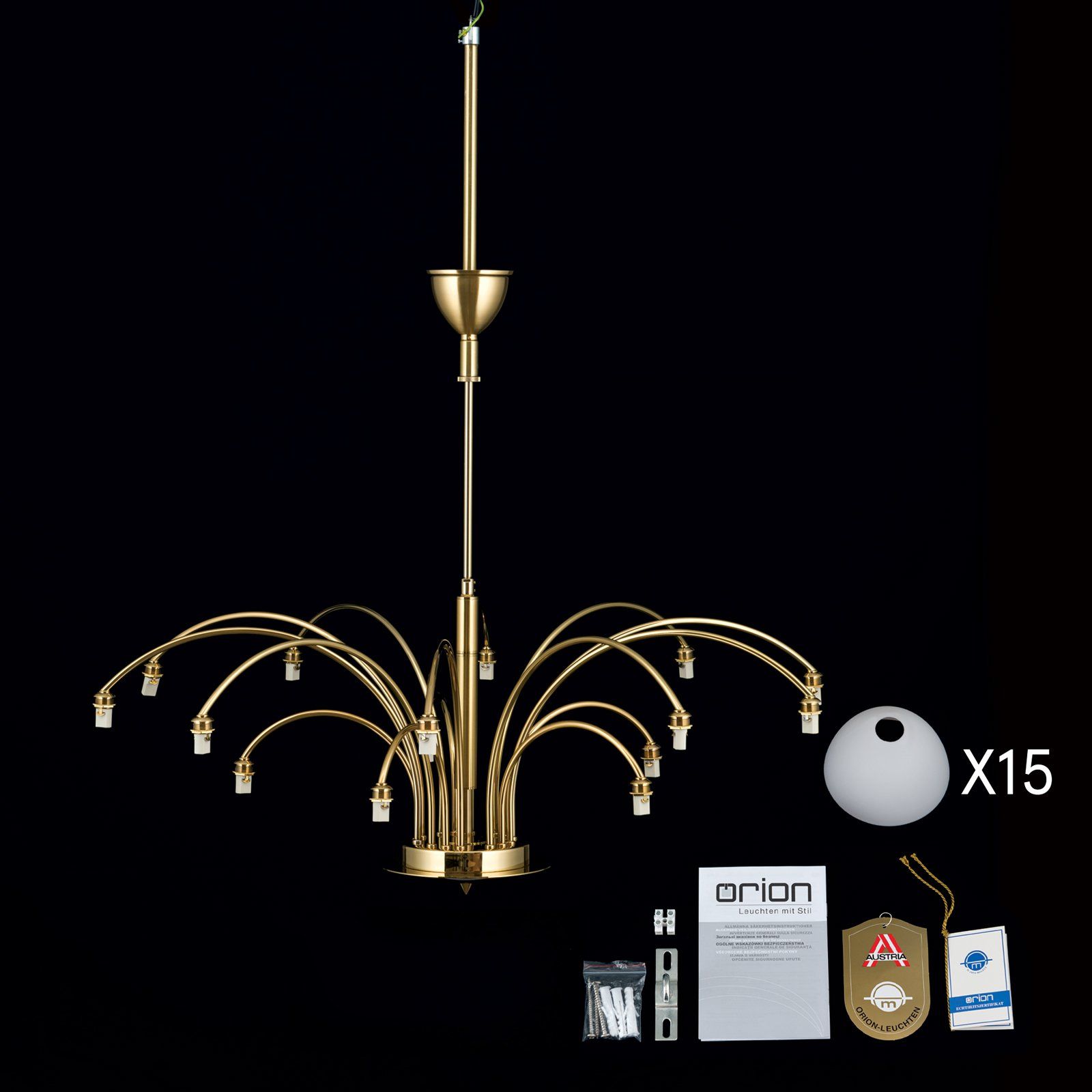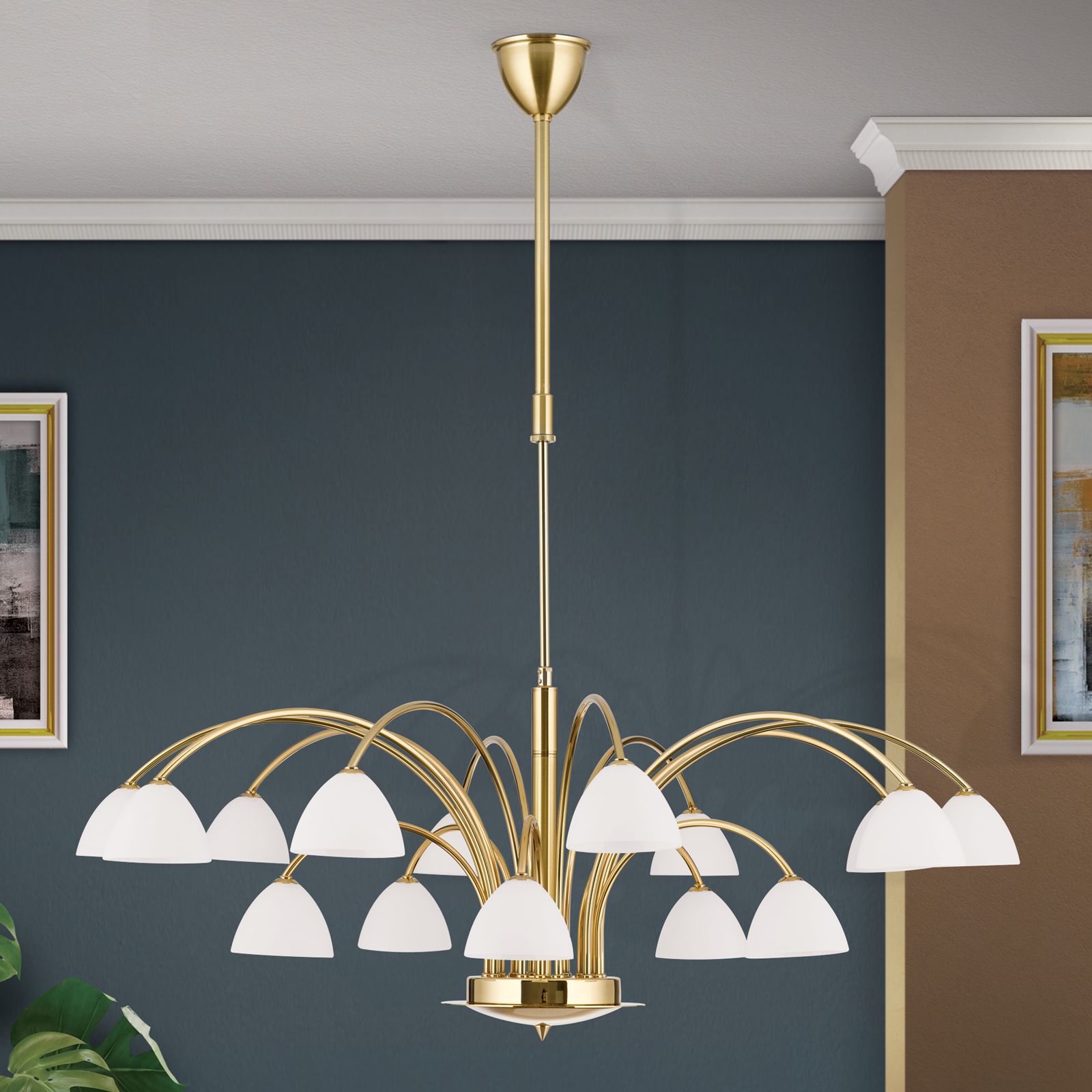 Luster OPALDESIGN, 15-flammig, Gold-matt, mit Opalgläsern