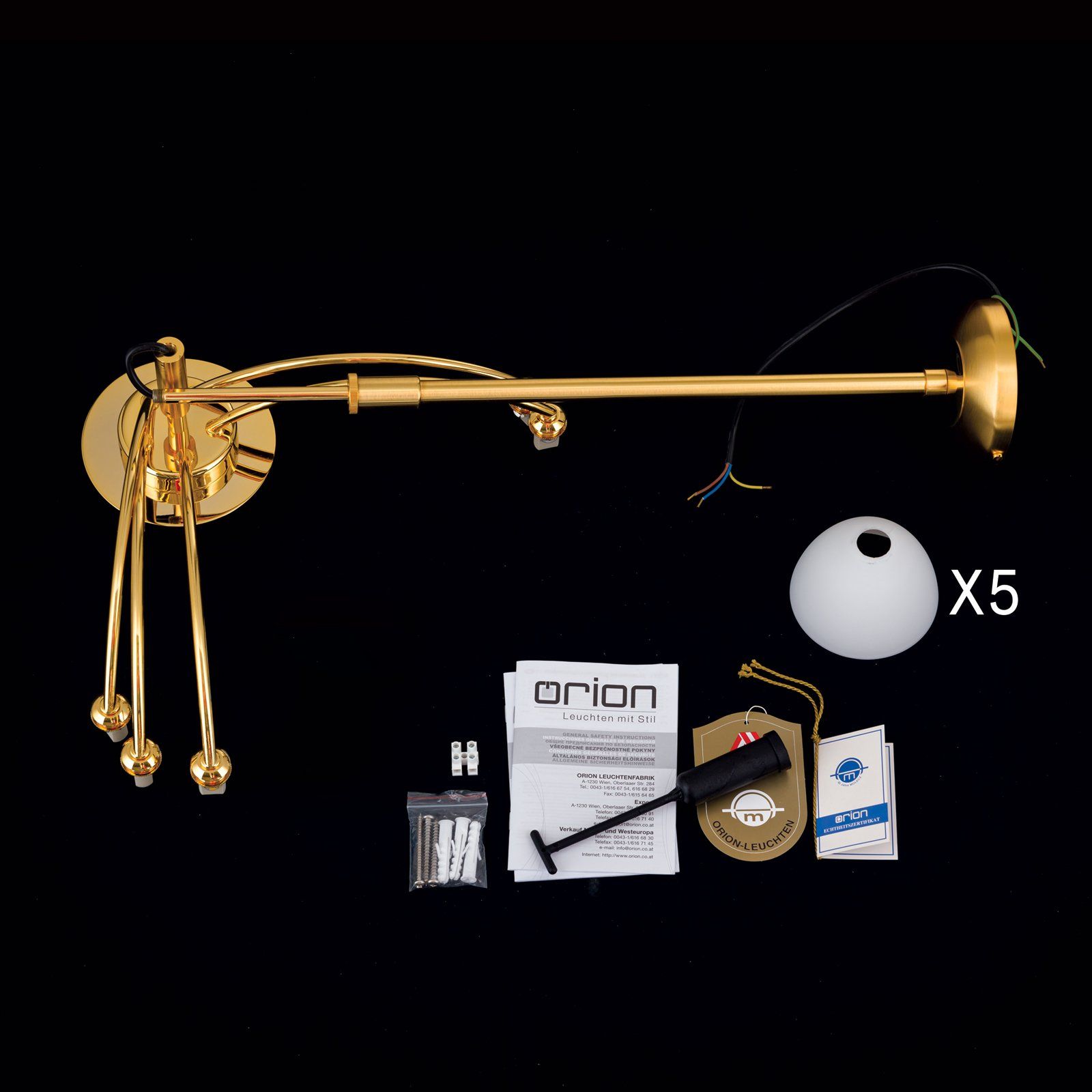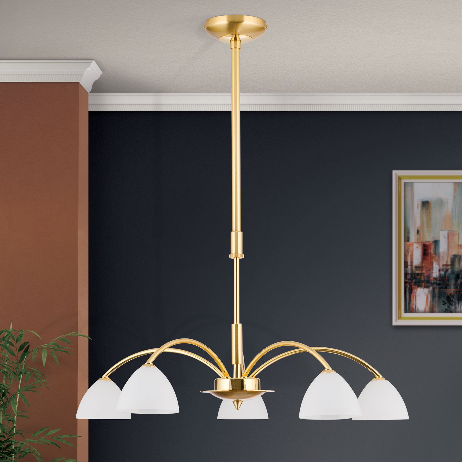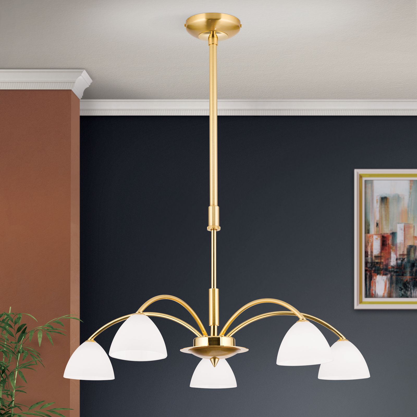 Luster OPALDESIGN, 5-flammig, Gold matt, mit Opalgläsern