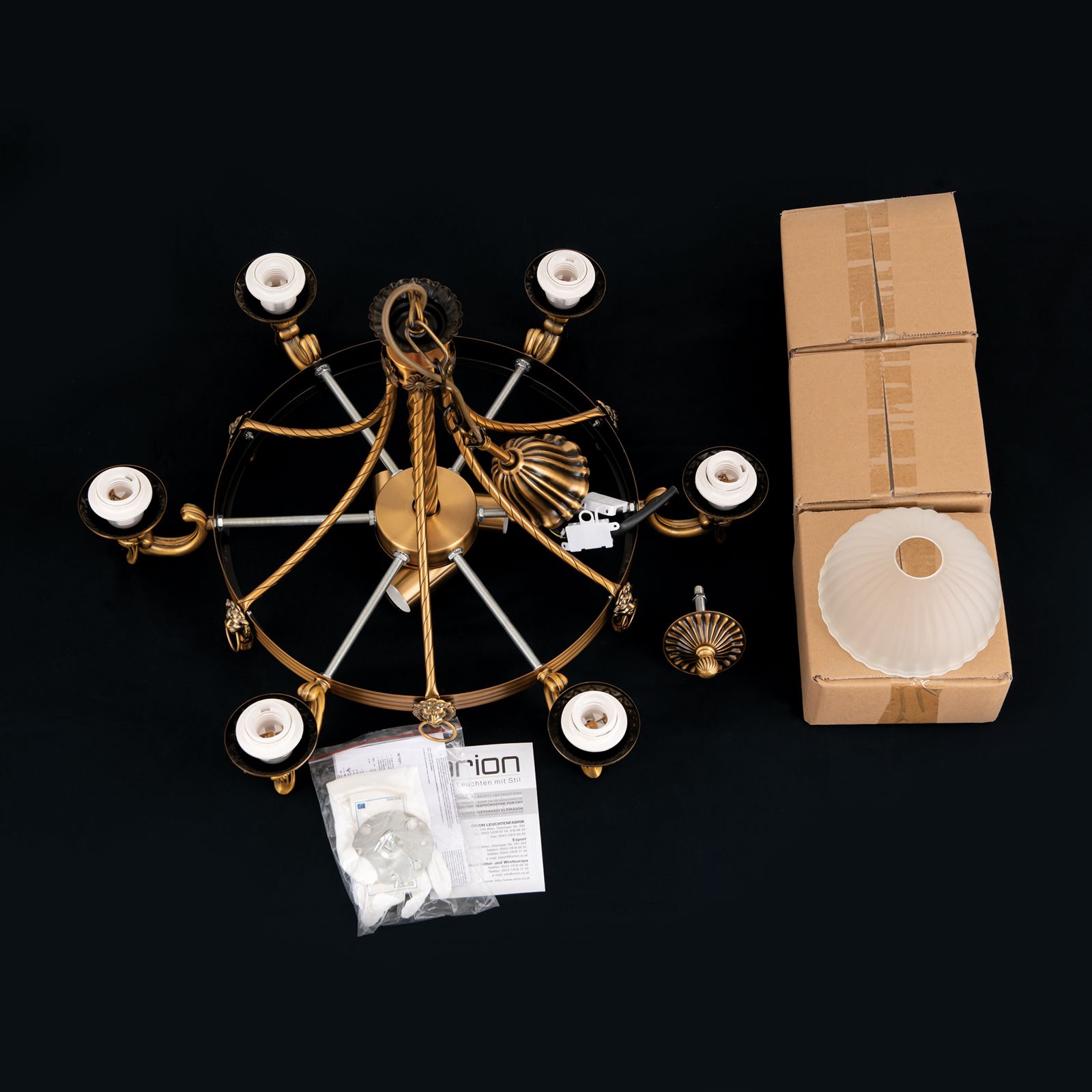 Der elegante und faszinierende Kronleuchter ROCCA mit 9 Leuchtenschirmen sorgt für bezaubernde Lichterlebnisse in Ihren vier Wänden. Um den großen Hauptschirm ordnen sich in gleichmäßigen Abständen sechs kleinere Schirme an, welche aus formschönem opalmattem Glas gefertigt sind. Sie harmonieren mit dem Metallgestell in Bronze, welches mit Ranken und Blüten versehen ist. Insbesondere die darauf befestigten Löwenköpfe hinterlassen einen bleibenden Eindruck.