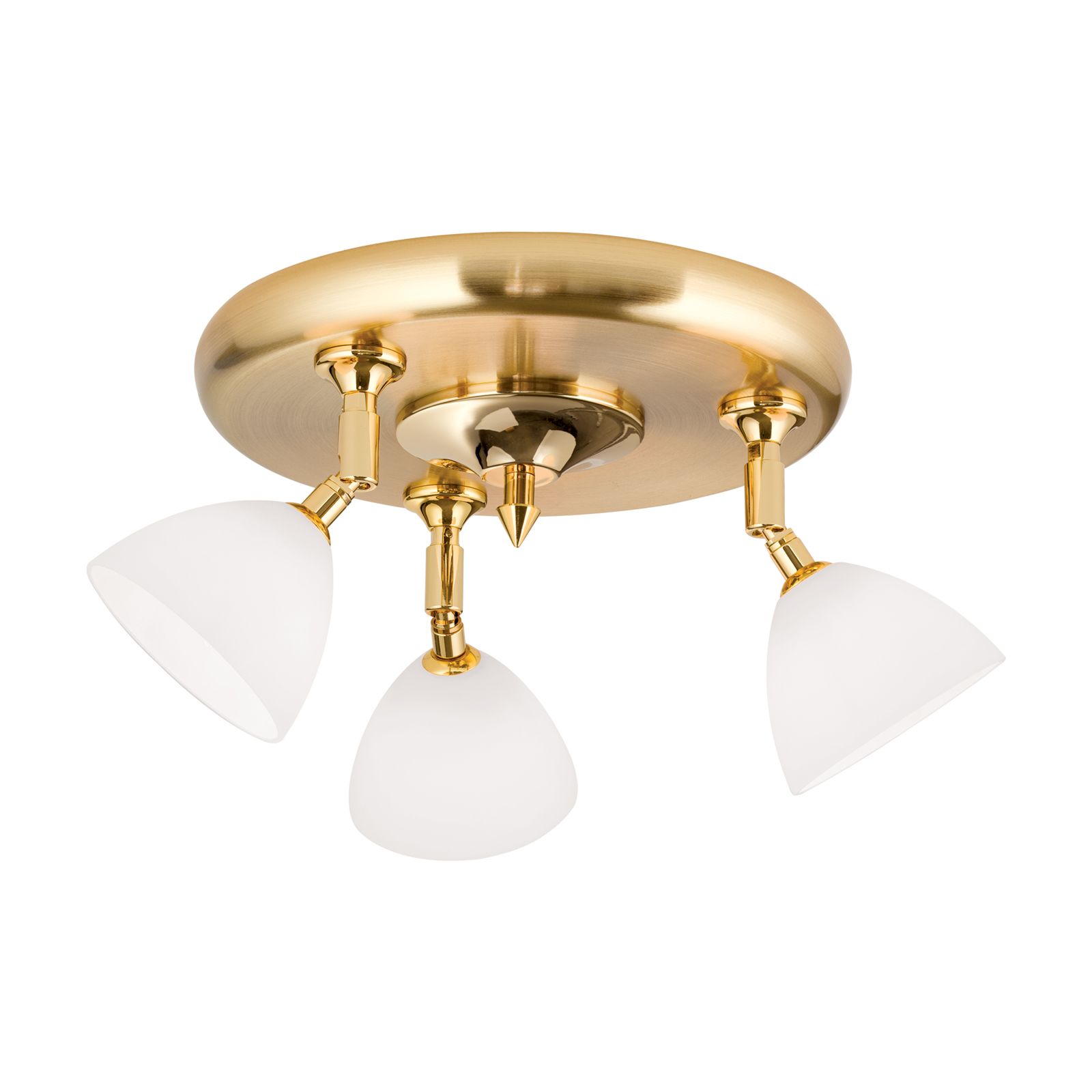 Runder Strahler OPALDESIGN, 3-flammig, Gold-matt, mit Opalgläsern