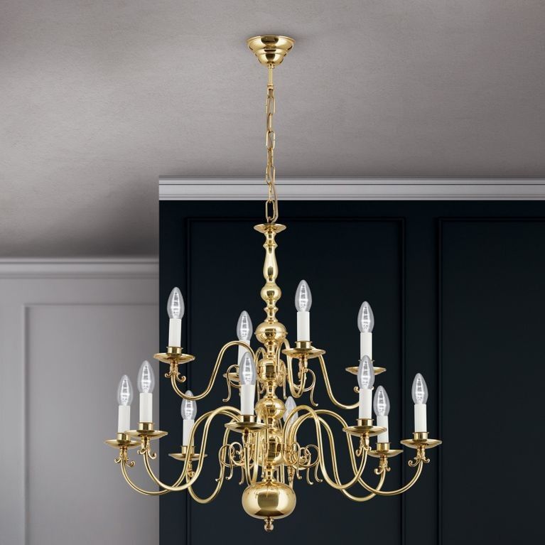 Stilluster FLÄMISCH, 12-flammig, Messing-glänzend