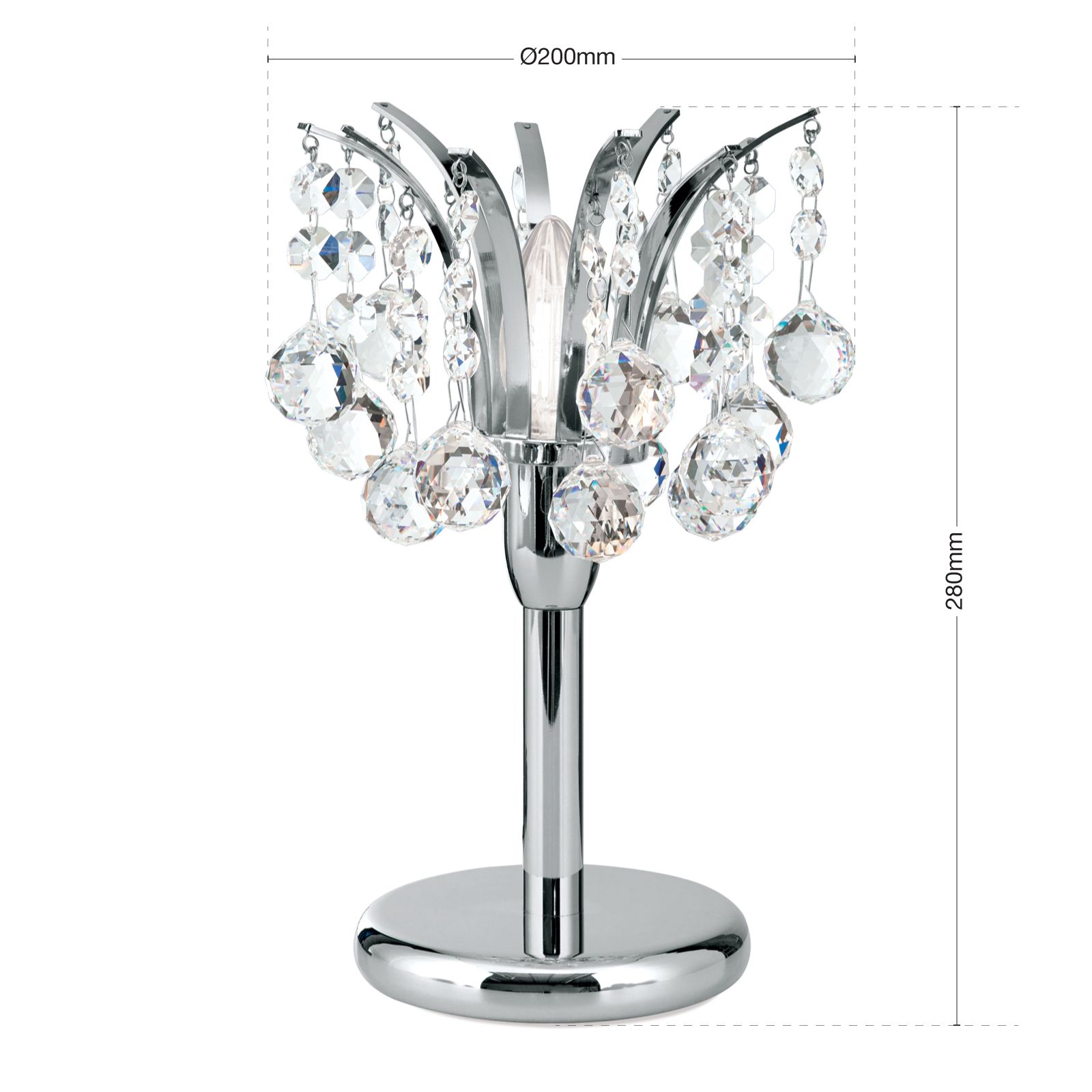 Tischlampe KRISTALL KLASSISCH, Chrom, 28 cm