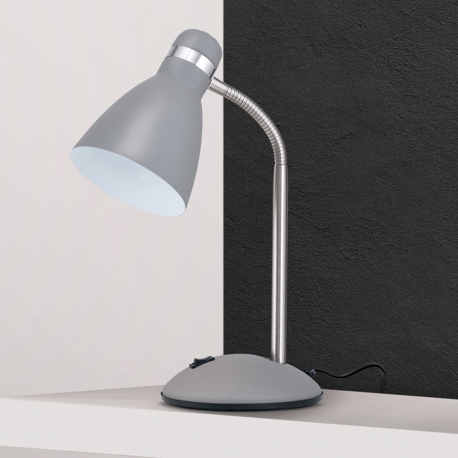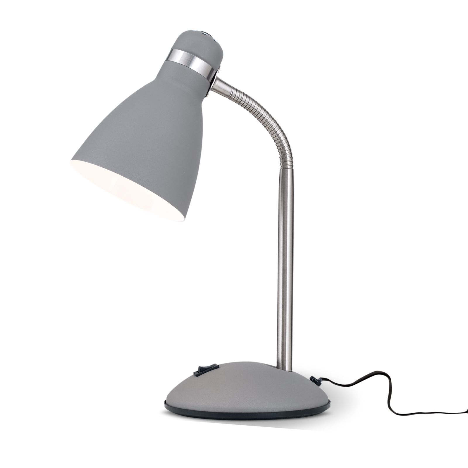 Harmonisch im Gesamtbild erscheint die Tischlampe SCHOOL und ist der ideale Begleiter für Arbeitsplätze von Groß und Klein. Der Standfuß sowie der Schirm sind farblich gleich, lediglich der silberne Leuchtenarm, der den oberen Teil des Schirms umschließt, hebt sich vom Rest ab. Zusätzlich lässt sich der Arm in seiner Richtung ändern, um den Lichtstrahl dorthin zu lenken, wo man ihn gerade braucht. Ein problemloses Ein- und Ausschalten der Leuchte ermöglicht der integrierte Schalter, welcher am Fuß der Lampe angebracht ist. Mit einer E27-Fassung ausgestattet, kann sie mit maximal 40 Watt bestückt werden. Empfehlenswert sind dabei sparsame LEDs zu verwenden, da sich durch einen äußerst niedrigen Stromverbrauch auszeichnen.