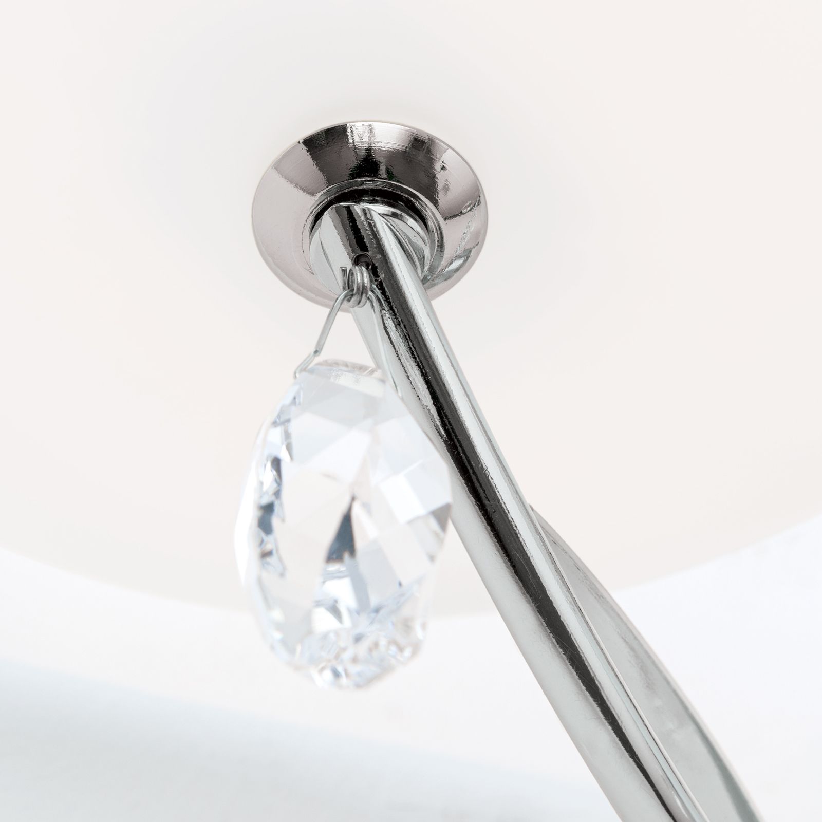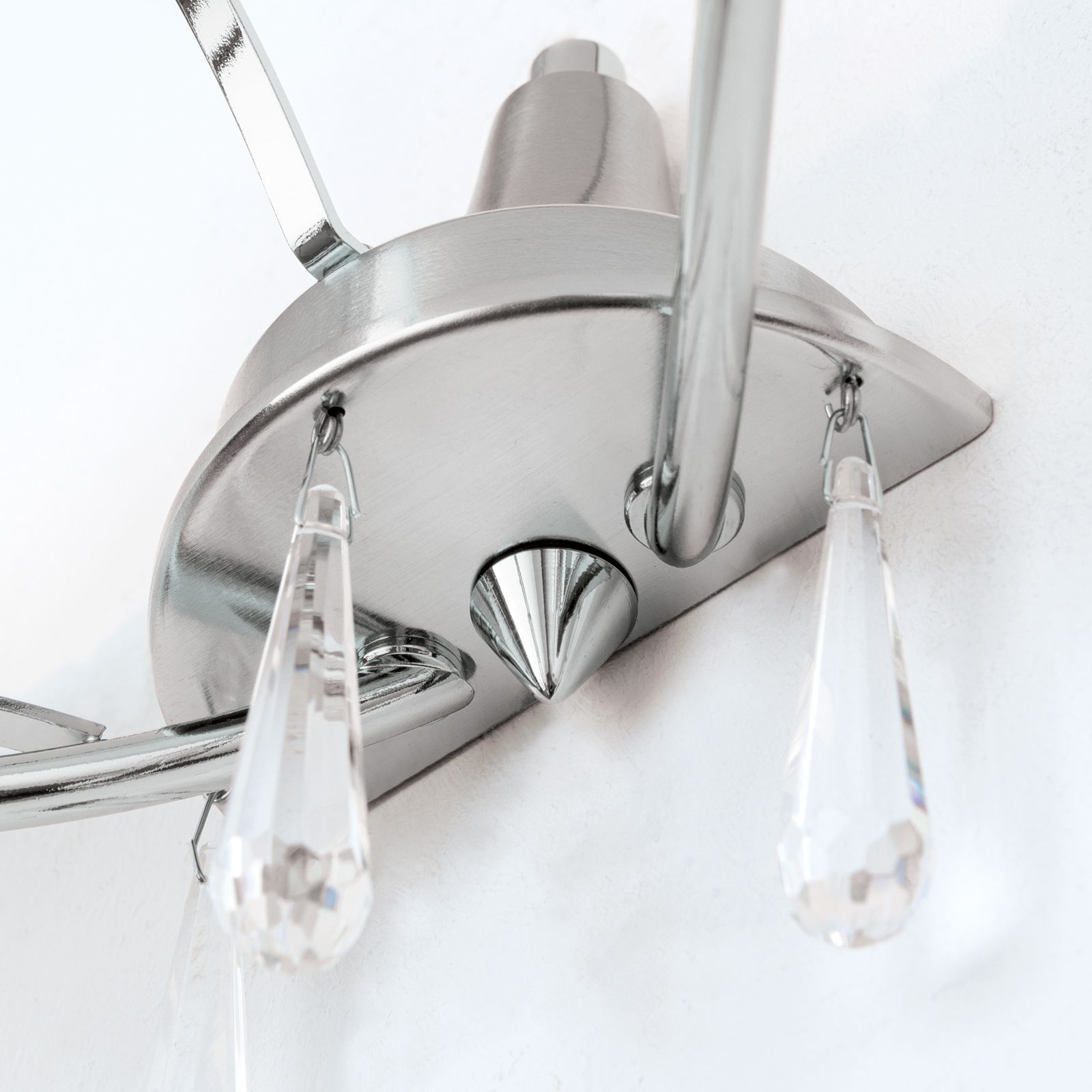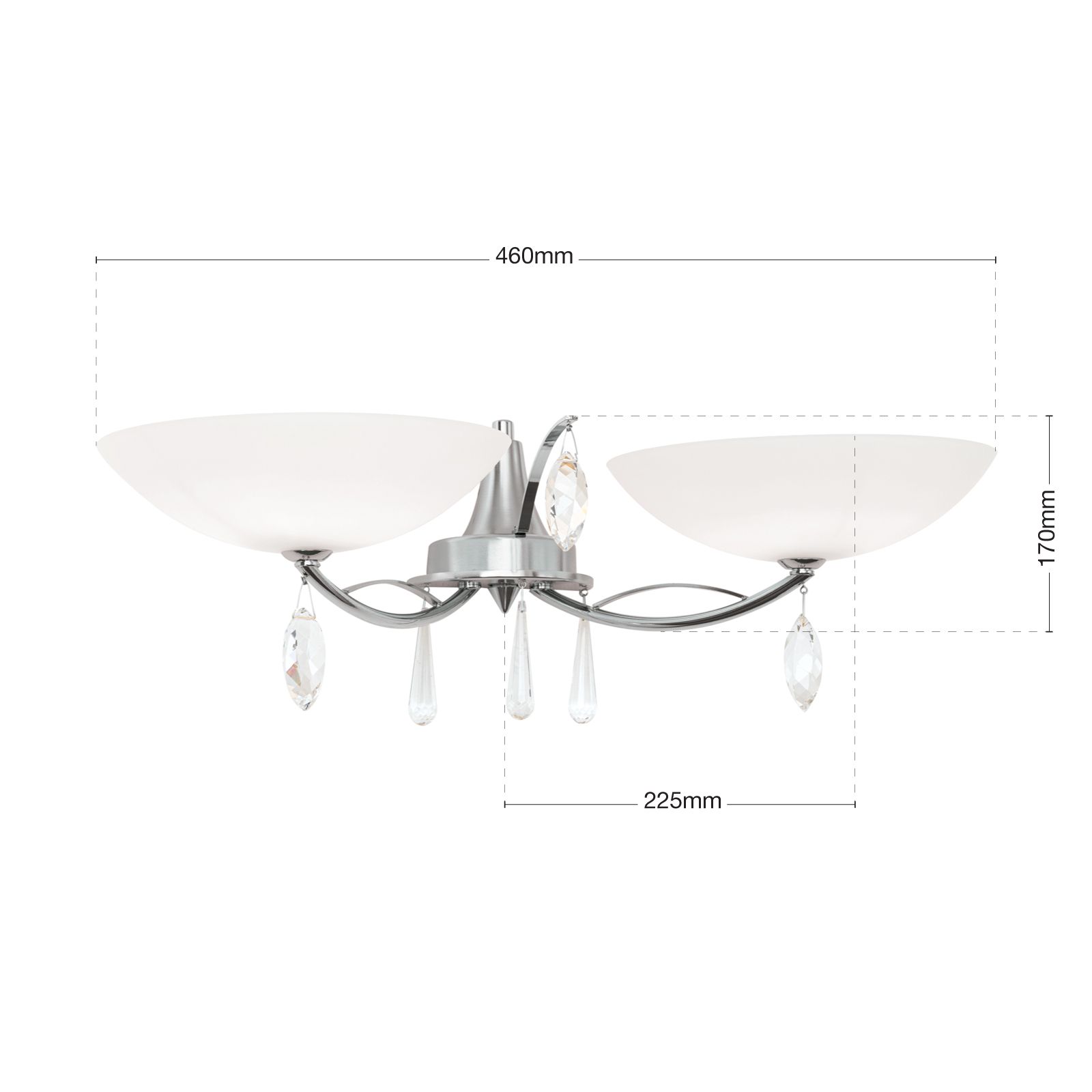 Die Wandleuchte OPALDESIGN verfügt über zwei opal matte Halb Glasschirme, die das Licht sanft streuen und eine warme und einladende Atmosphäre schaffen. Die Schirme sind zudem verziert mit insgesamt 6 funkelnden Kristallen, die dem Raum einen Hauch von Luxus verleihen und das Licht wunderschön reflektieren.